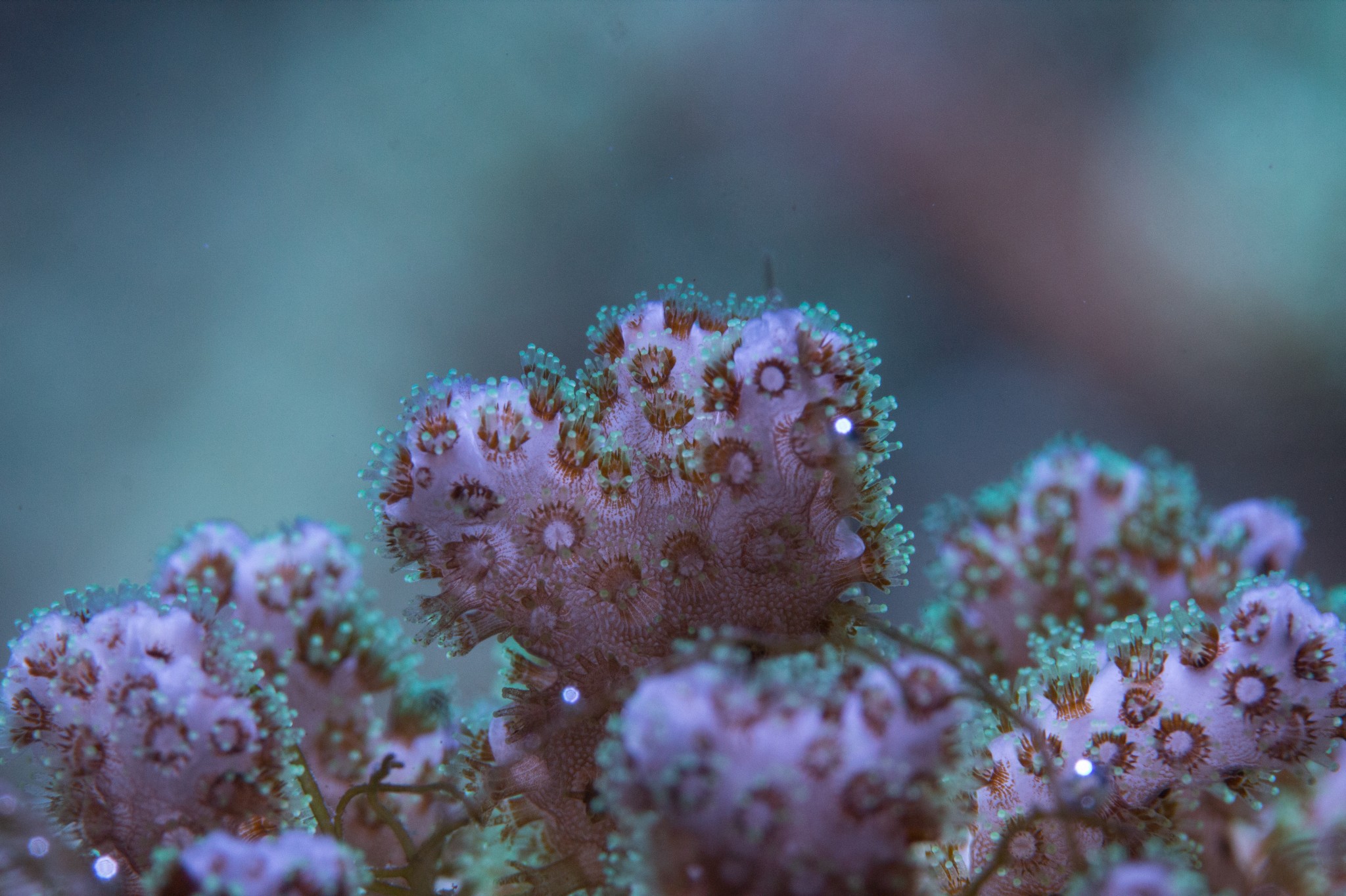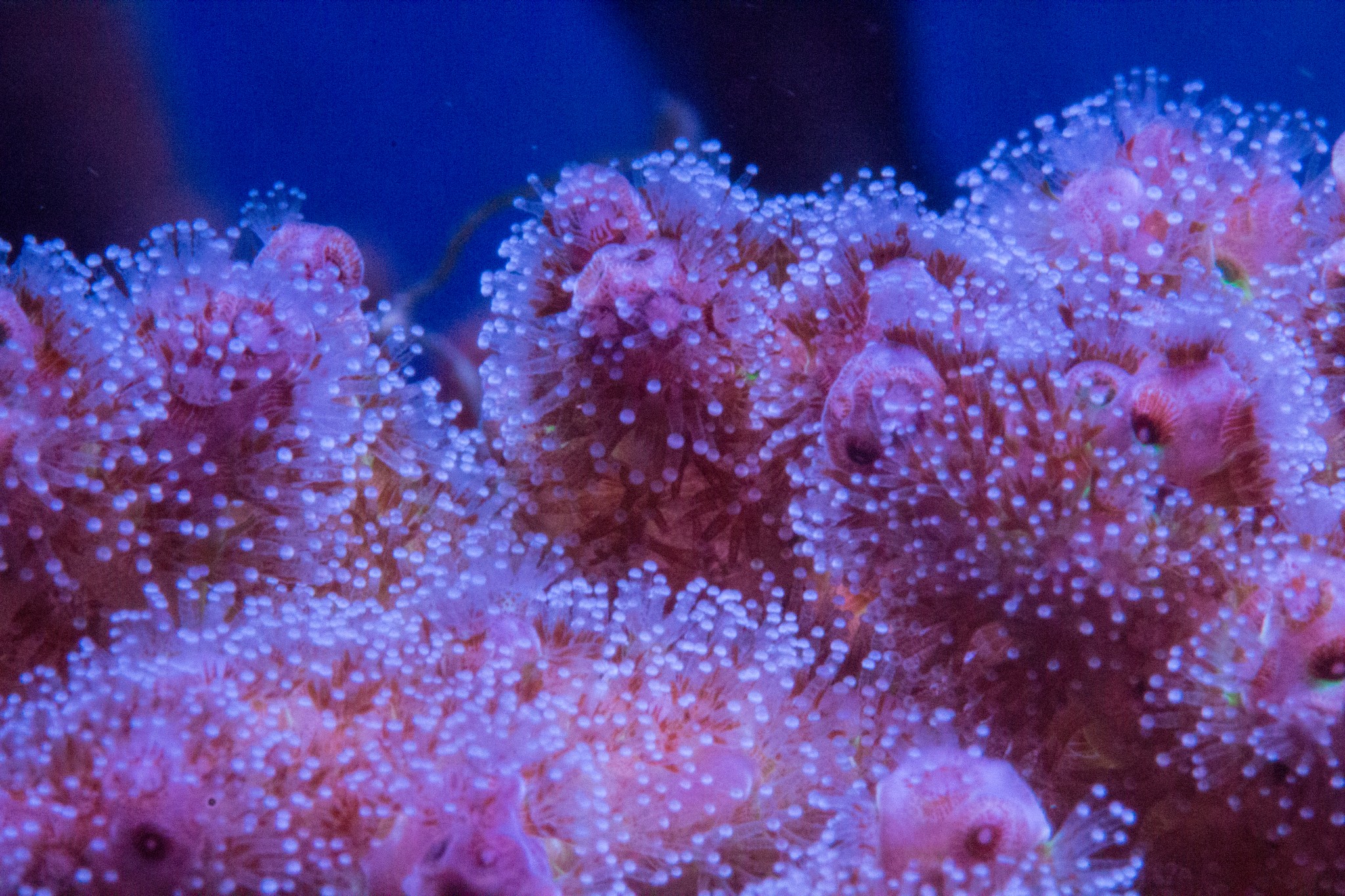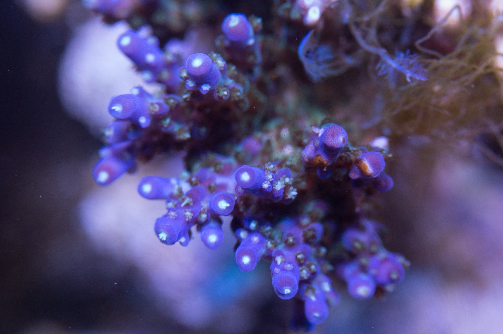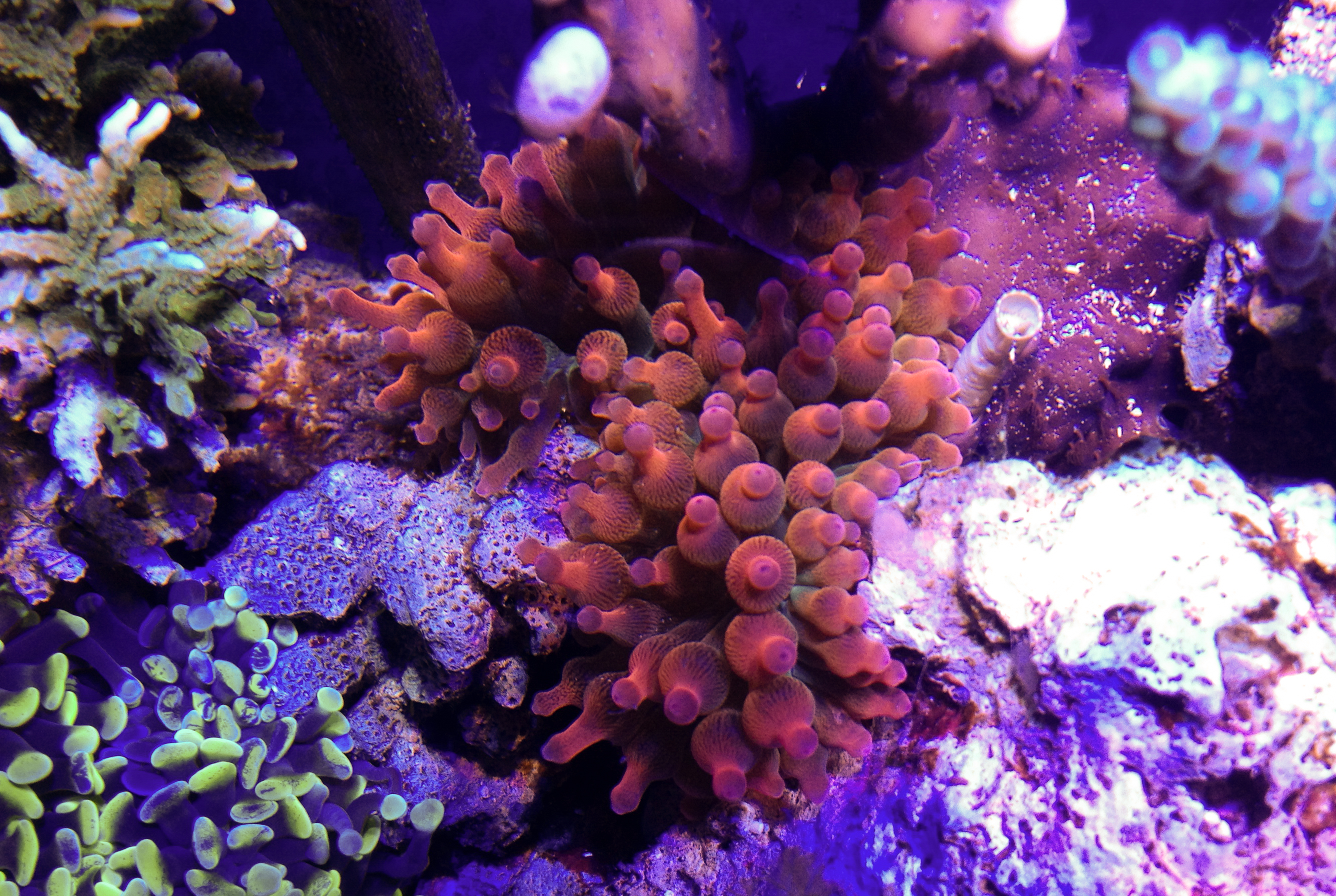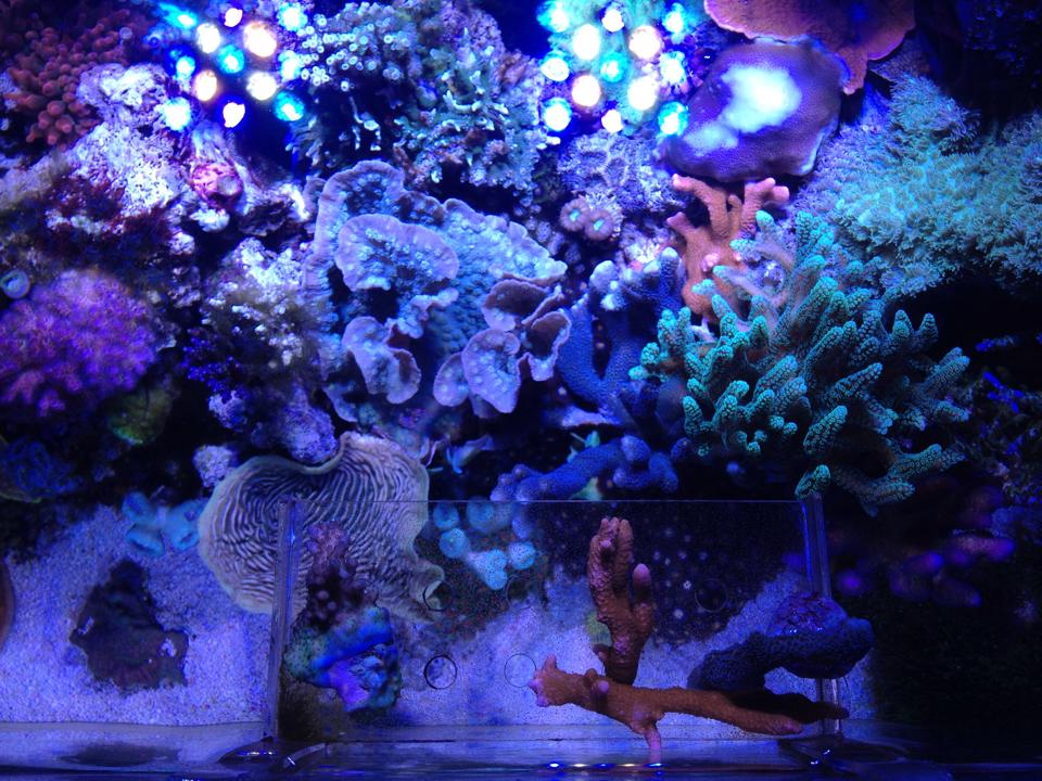 Sinertävät Acroporat ovat kasvukärjistä ottaneet valaistuksesta riippuen itselleen vaaleansinisen tai vaaleanliilan värin, vihertävät korallit (Montipora, Hydnophora, Echinophyllia) ovat syventäneet vihreän sävynsä, punainen Montipora kasvukärjistä saanut vaaleampaa punaista, muu runko puolestaan aavistuksen verran punaisempi kun ennen.