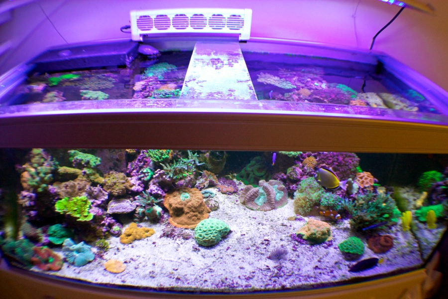 Ja lämmöstä, ainakin paperilla sitä pitäisi muodostua suhteessa vähemmän diodeilla kuin putkilla. Käsivaralta paha sanoa sillä putket paistoivat lämpöä joka suuntaan ja valaisin oli passiivirakenteinen, nyt taas lämpöä ei juurikaan tule säteilynä (etenkään altaaseen) ja suuri jäähdytysmassa yhdistettynä tehokkaaseen ilmankiertoon pitää siilin pinnaltakin viileänä.