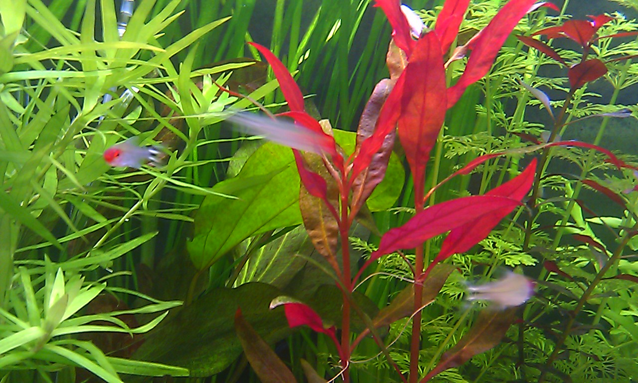 Punanuottaruoho lobelia cardinalis on tuo etualan kasvi. Punaiset ilmakasvatetut lehdet on nyt pikkuhiljaa lähtenyt ja alkaa tekee uutta kasvustoa, kasvilla meni hetki sopeutua altaaseen. Olin sitä jo heivaamassa pois kun tiputteli lehtiä eikä kasvua juuri ollut mutta onneksi maltoin itseni.