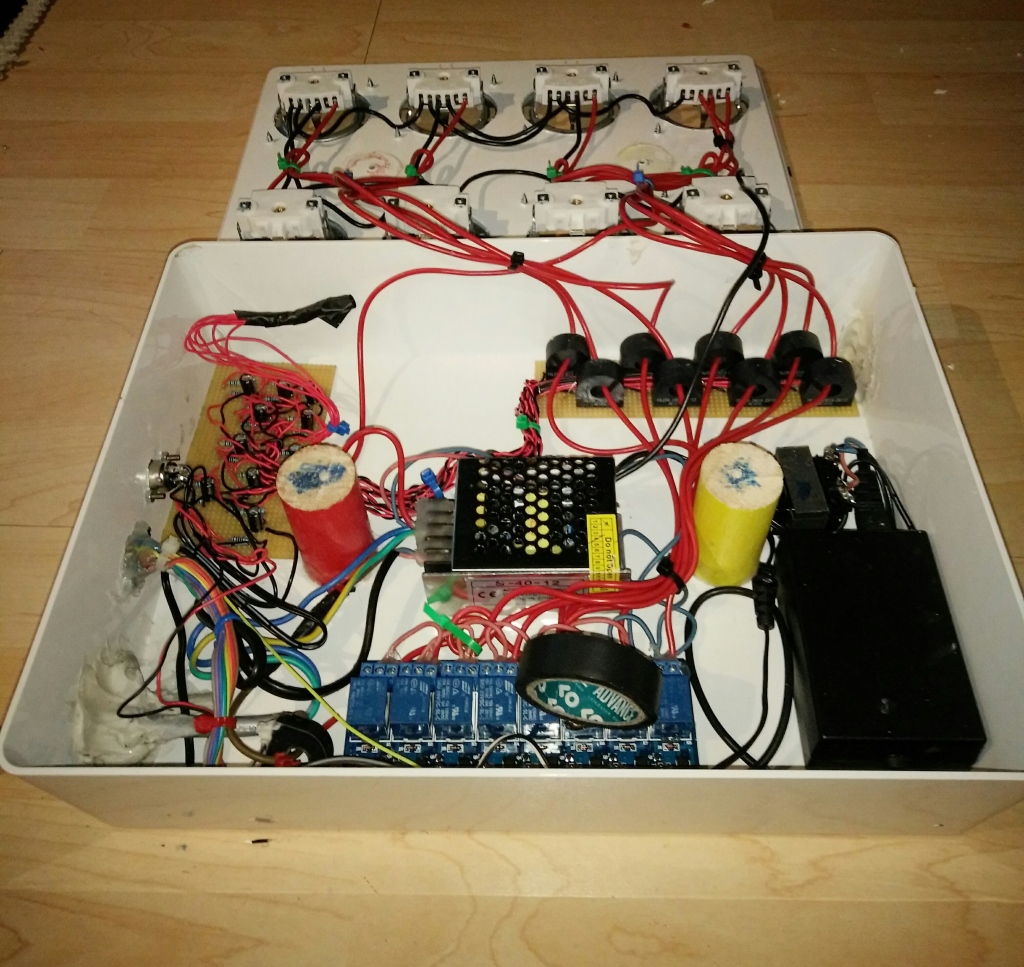 mutta tämä oli välttämätöntä, koska lisäsin / ohjelmoin ohjaimeen uuden ominaisuuden, joka mittaa laitteiston sähkönkulutuksen kokonaistasolla, sekä jokaisesta pistokkeesta erikseen.