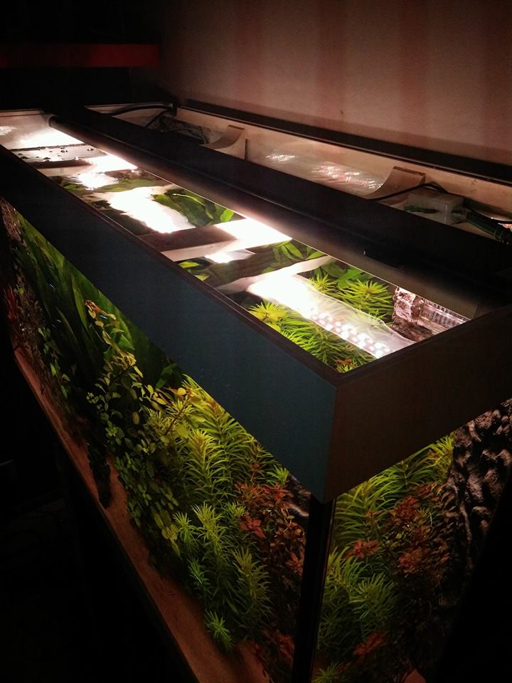Aqualightin HI-Lumen LEDit ovat hieman huteria rakenteeltaan, mutta ihan toimivia. 10000K värillä ne vääntää punaiset sävyt purppuraksi ja vihreän hieman turkoosin väriseksi, mutta toisaalta kalojen värit korostuu kivasti. Lupailevat kilpailijoitaan kovempia lumeneita, mutta hieman epäilen. Pohjaan asti ei ainakaan kovin paljon valoa pääse syvässä tankissa, kun yksittäiset ledit on vain 0,5W. Hinnaltaan halvin vaihtoehto ~15€ postikulujenkin kanssa. Etenkin jos puhutaan 90 cm malleista ja siitä alaspäin. Ei mitään hajua toimiiko tuo