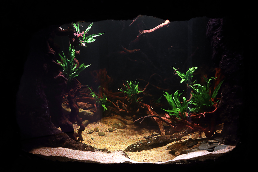 Tykkään kun niistä tulee akvaarion pohjalle sellainen väreilevä efekti, näyttää luonnolliselta. Toisessa tuhanlitraisessa on samanlaisia valoja sekä loiteputki, mutta ne on veden pinnasta vain 10-20cm eikä niistä lähde minkäänlaista väreilevää efektiä mikä on harmi. Niiden kanssa täytyy vähän viritellä.