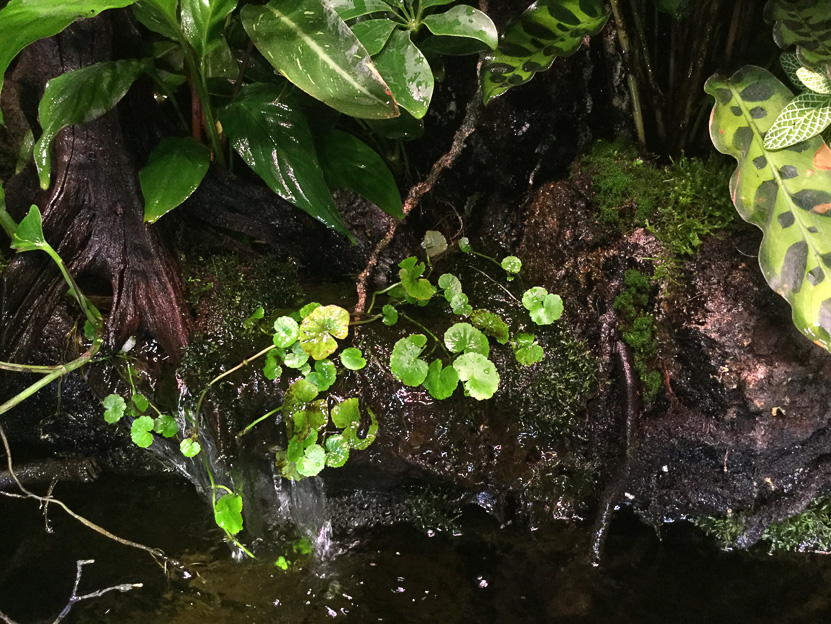 Sen jälkeen kun lisäsin Ikean kasvivalot paludaarioon alkoi tapahtua. Kasvit innostuivat kasvamaan vauhdilla ja uutta versoa pukkaa joka puolelta. Monta kasvia jotka uinuivat tätä ennen kasvavat nyt vauhdilla. Yritän olla kajoamatta kasvien kasvuun mitenkään ja jos jokin lehti peittää toiselta kasvilta valon, annan kasvun tapahtua luonnollisesti. Joku Maija-lajin kasvi jätti kultaköynöksen verson lehtiensä piiloon ja kun yksi lehdistä kuihtui, alkoi kultaköynös saada valoa ja teki melkoisen kasvupyrähdyksen kunnes Maija kasvatti uuden lehden ja nyt köynös on taas varjossa siihen asti kun koittaa uusii tilaisuus. Hauska seurata tätä hiljaista elämää paludaariossa.
