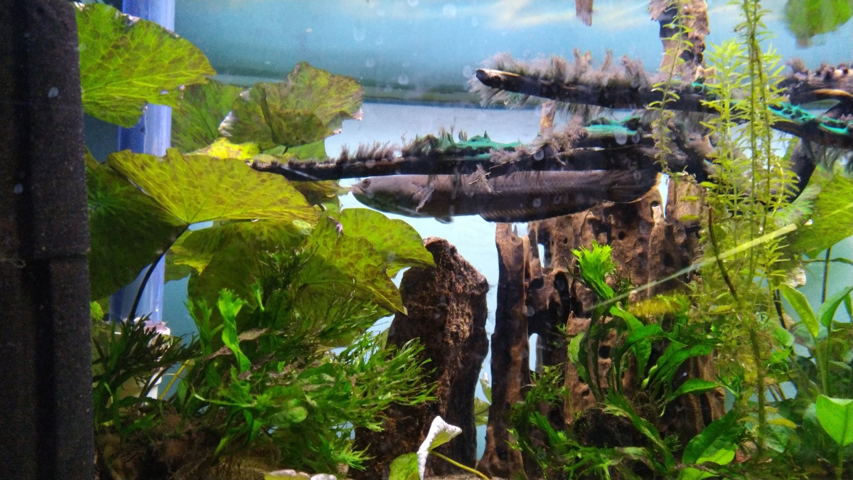 Eläviä asukkeja tuolla on yksi Channa Laos Fireback sekä muutama partaonni jotka channa totesi liian rapeiksi syötäväksi.