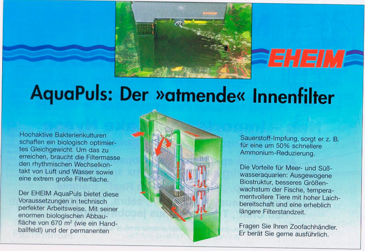 Mulla on tässä meneillään urakka selata ja osittain lukeakin läpi iso kasa saksalaisia akvaariolehtiä 80-luvun lopusta noin vuoteen 2010 saakka. Parhaillaan on menossa vuosi 1993. Hämmästyttävää, millaisia suodattimia mainostetaan näissä lehdissä. Alla on Eheimin ja Hagenin (Fluvalin valmistaja) valutussisäsuodattimet.