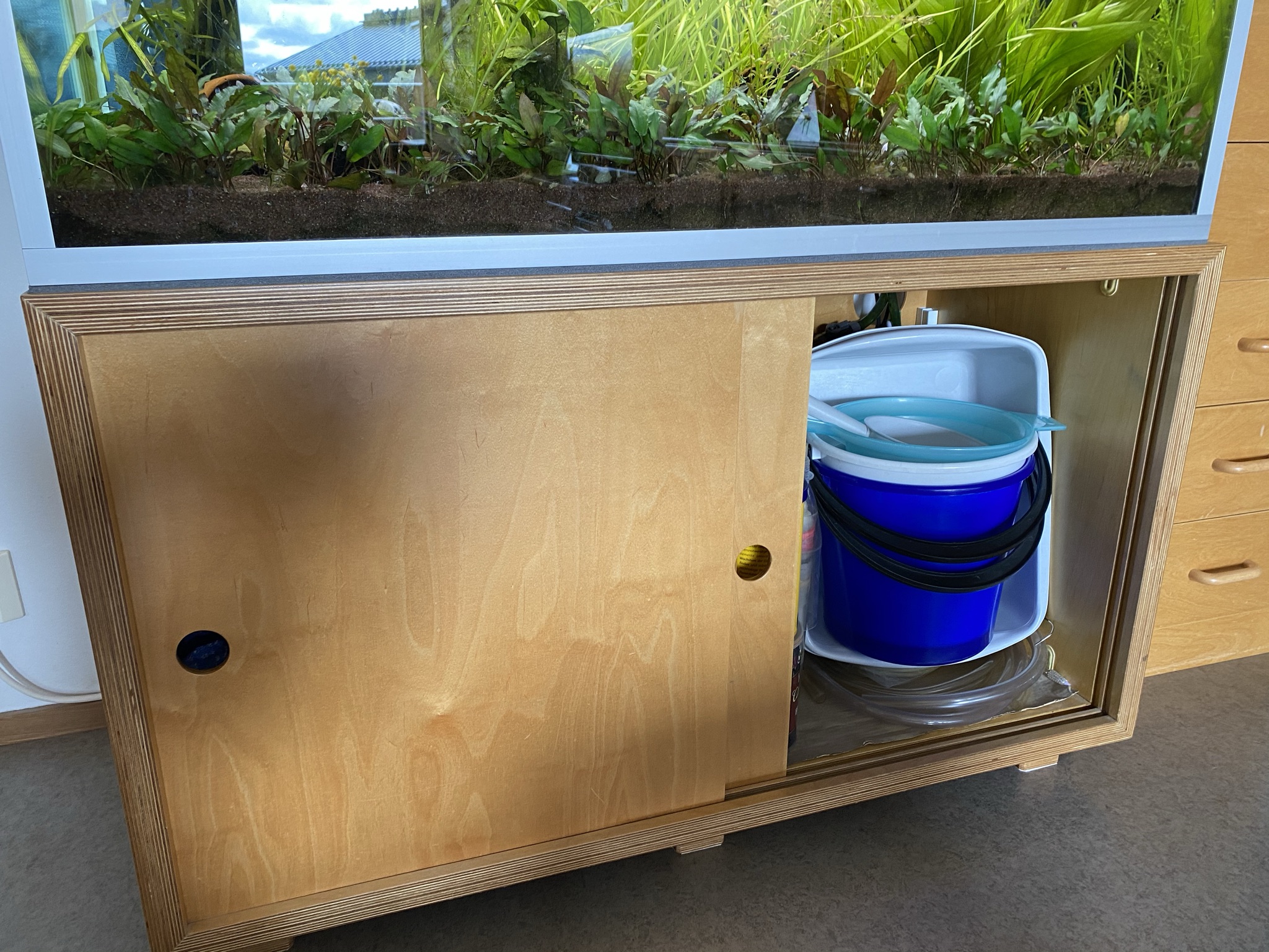 Kappi on 2002 30 mm vanerista rakennettu 107cm x 47cm x 65cm, päällä nyt akvaario 105cm x 45cm x 45cm (210 l)