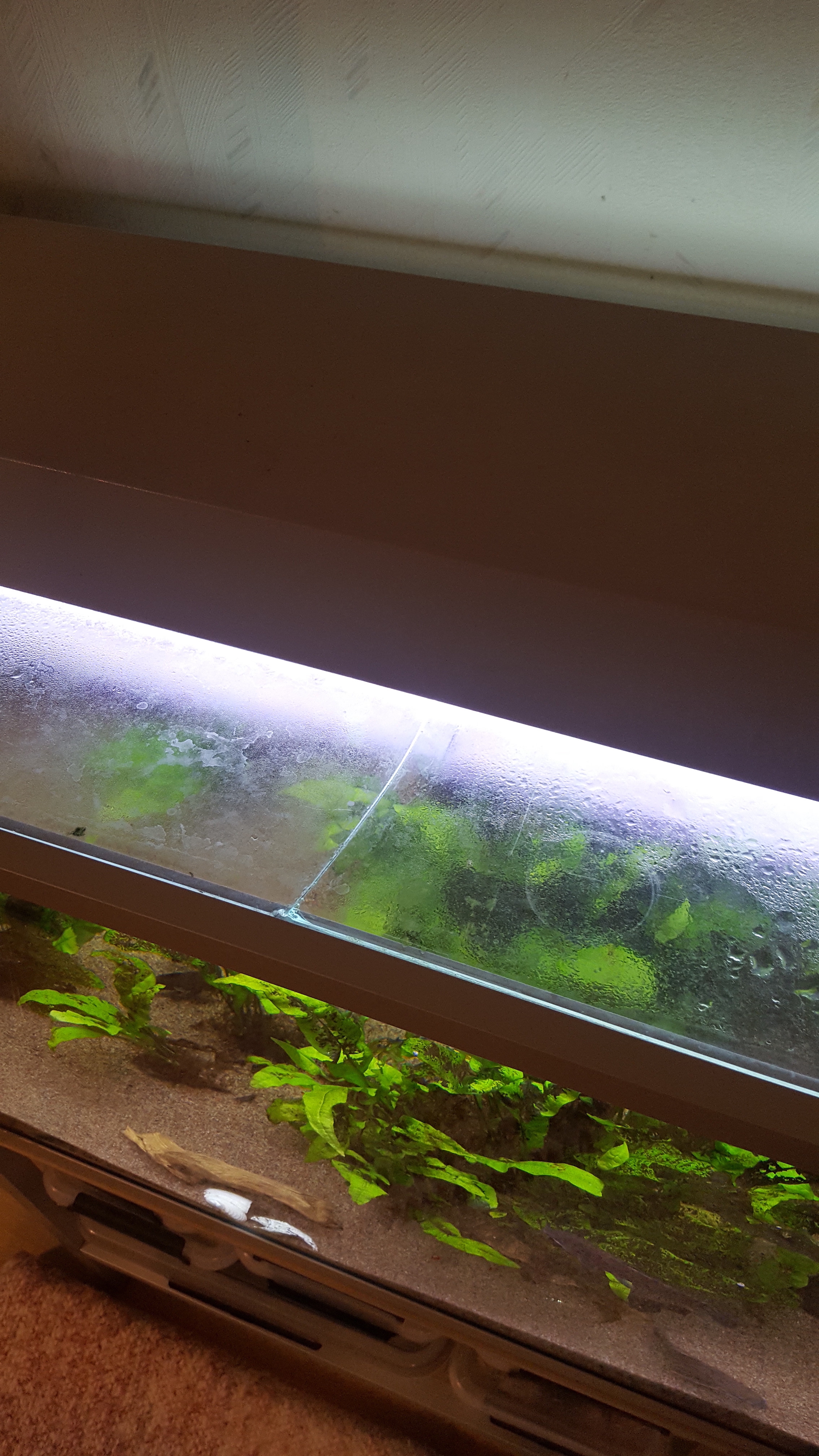 Ehjä ja toimintakuntoinen aikvaario. Ainoa asia mikä on rikki on toinen laseista joka on halki. Tämä näkyy viimeisessä kuvassa. Ei haittaa käyttöä lainkaan.