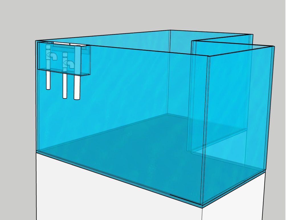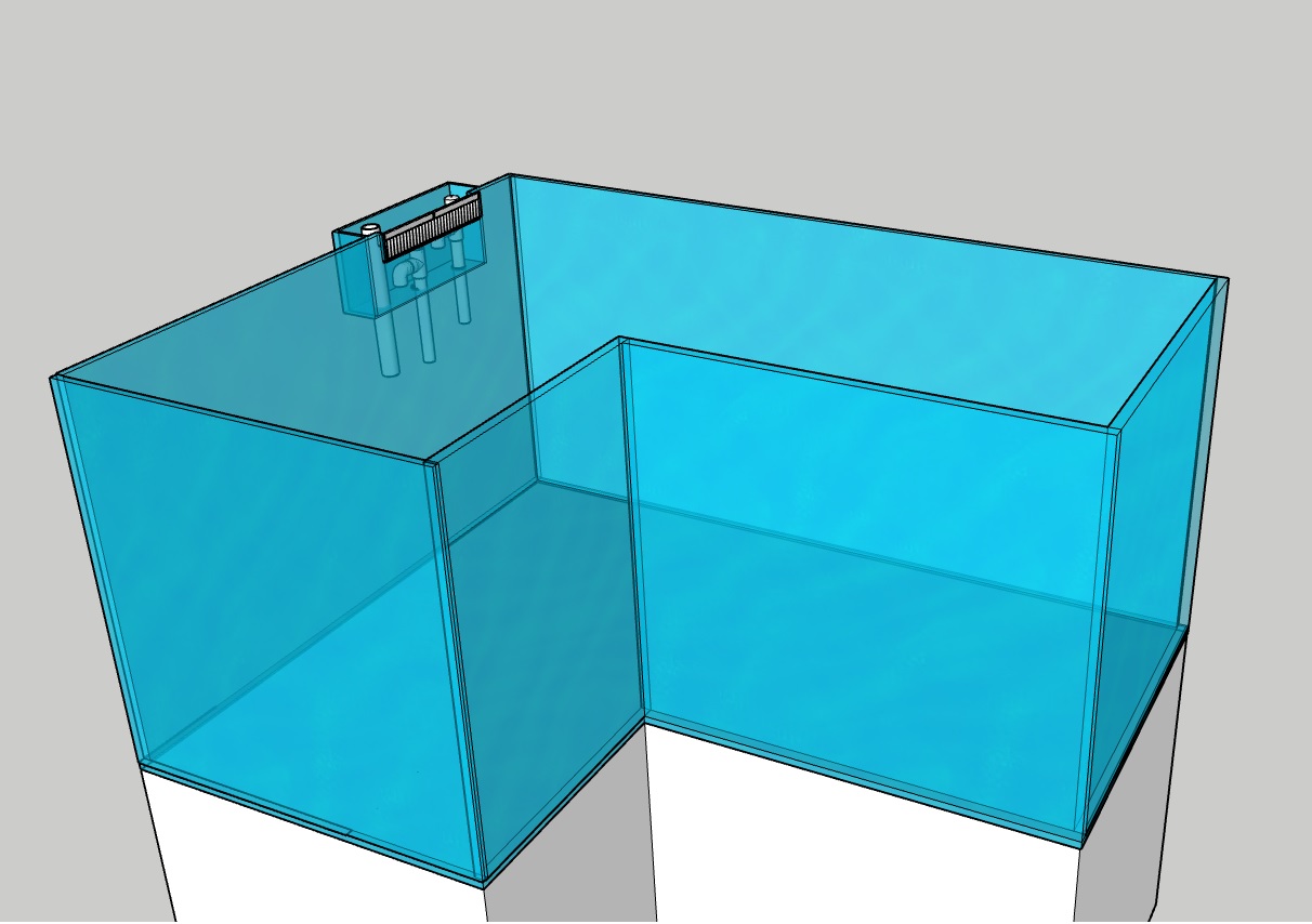 Molempiin nurkkiin kaatokulmat ihan siksi, että vesi liikkuisi tasaisesti koko akvaariossa. Kaatokulmaa voi myös hieman toteutuksesta riippuen käyttää varsinaisen suodattimen mekaanisena esisuodattimena. Kaksi ylivuotoa tuo lisäksi turvallisuutta, koska jos toinen tukkeutuu syystä x niin toisesta valuu silti akvaarioon tuleva vesi ala-altaaseen. Jollei se toinenkin sitten tukkeudu syystä y :)