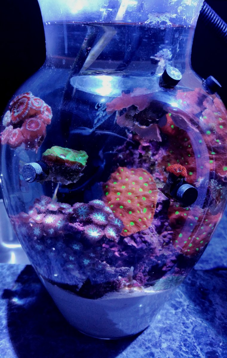 The point of this system was to test pico reef longevity using specialized care methods and outline the true needs of mixed invertebrate marine systems. This is the video of the vase from the pics above, taken last week