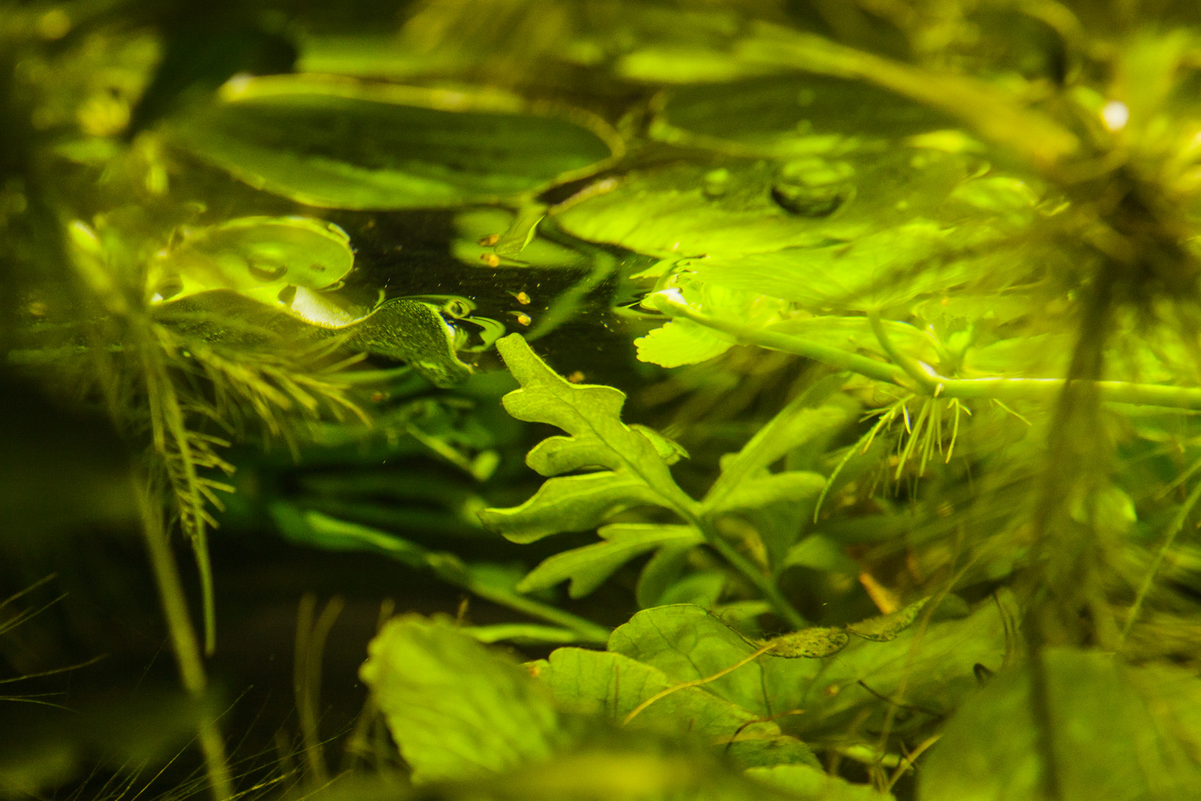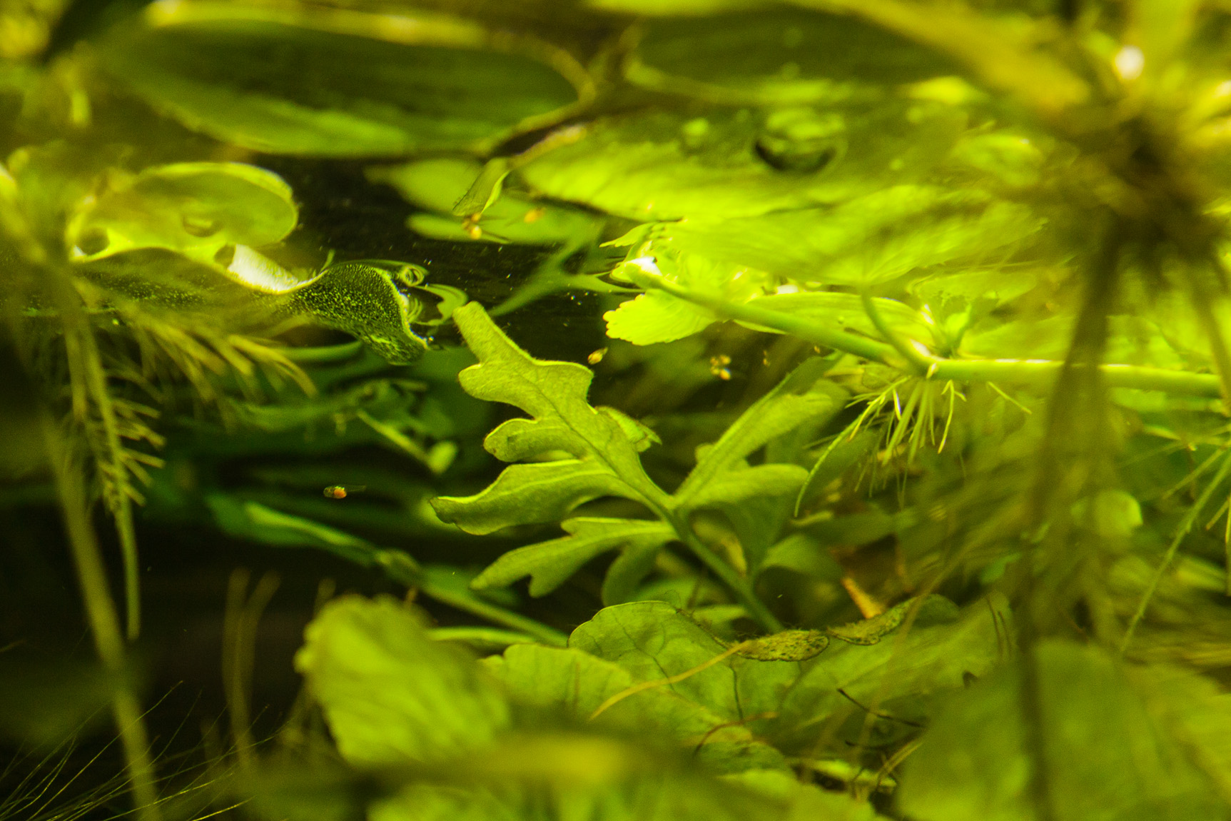 Akvaarion pinta näyttää tälle. Tarkkaan kun katsoo, näkyy muutama poikanenkin.