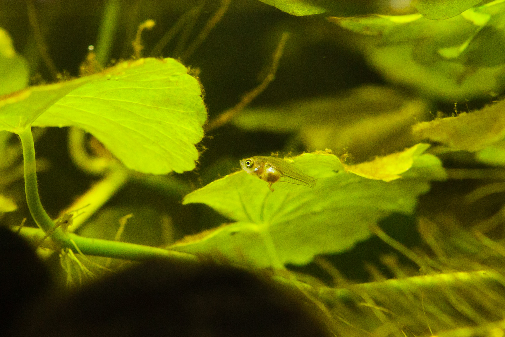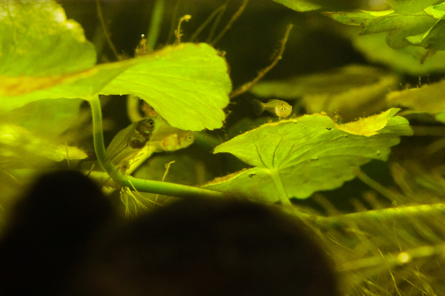 Lämpötilaa nostin taas asteella. Nyt päivällä täydet 30 ja yöllä 28. Tästä en enää nosta, vaan pidän näissä lämmöissä kunnes ovat jokseenkin täysikasvuisia, jolloin voi tiputtaa muutamalla asteella. Vesisaniaiset ovat valloittaneet akvaarion. Ilmeisesti imevät ravinteita niin paljon, että pistia ja konnanputki kasvavat huonosti.