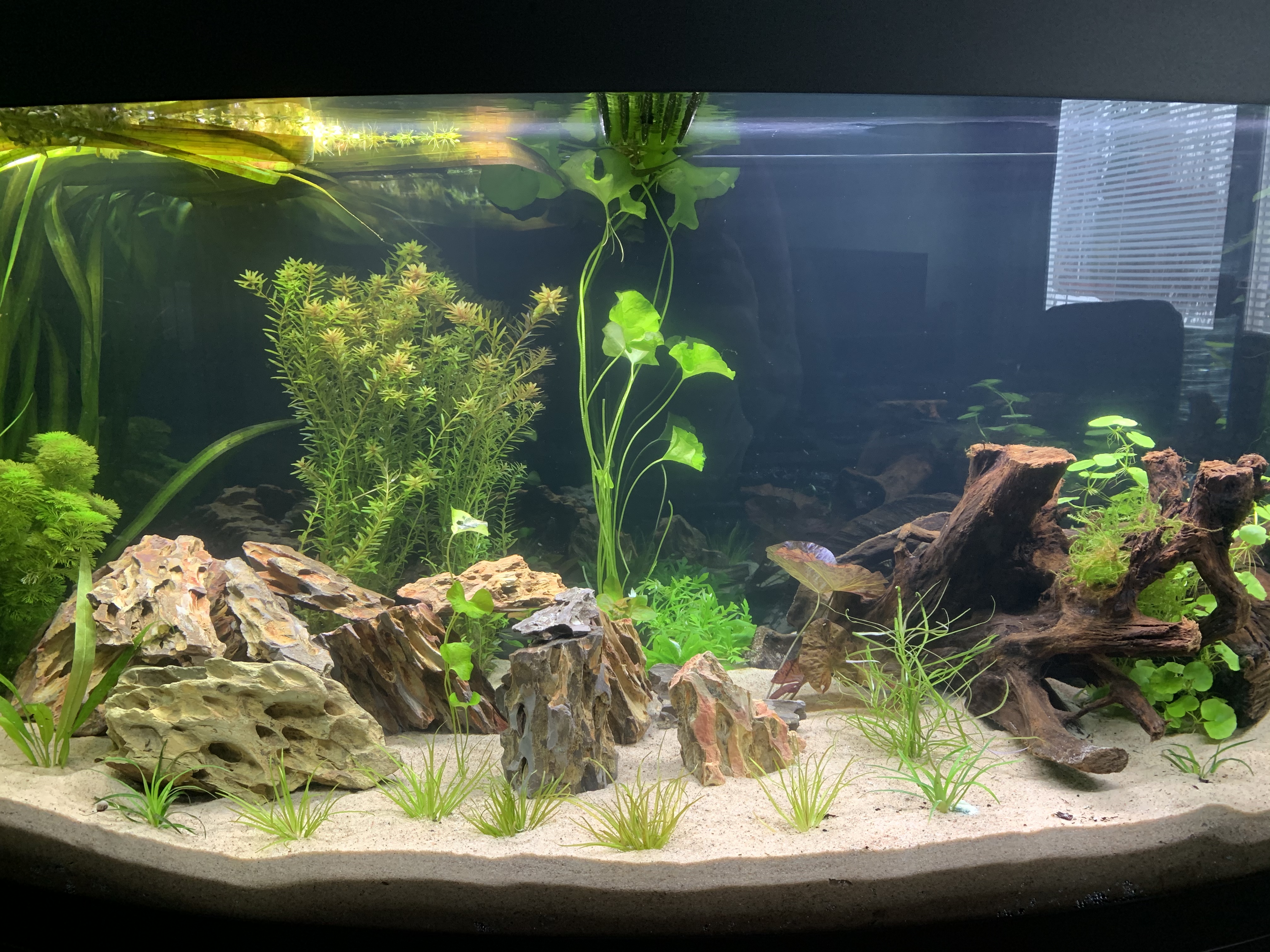 Pohjaan myös aion osittain hiekan peittävää aluskasvillisuutta/ heinää. Pitää katsoa milloin mahdollinen mutta valonlisäykseksi tulossa fluval plant 3.0 59w.