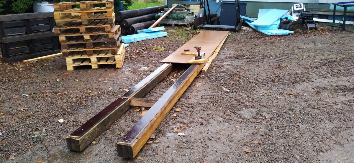 Lopuksi uretaanit sekä pressu päälle ja pari lavaa painoksi jotta tuuli ei vie pressua.