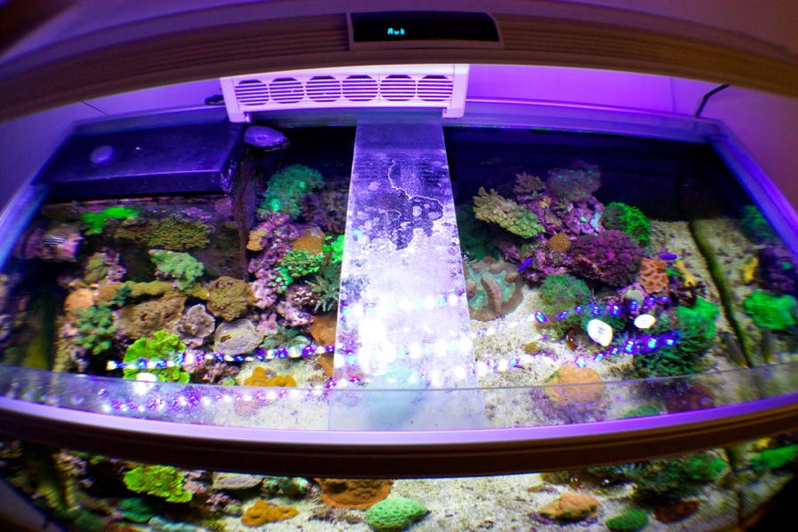 Ja lämmöstä, ainakin paperilla sitä pitäisi muodostua suhteessa vähemmän diodeilla kuin putkilla. Käsivaralta paha sanoa sillä putket paistoivat lämpöä joka suuntaan ja valaisin oli passiivirakenteinen, nyt taas lämpöä ei juurikaan tule säteilynä (etenkään altaaseen) ja suuri jäähdytysmassa yhdistettynä tehokkaaseen ilmankiertoon pitää siilin pinnaltakin viileänä.
