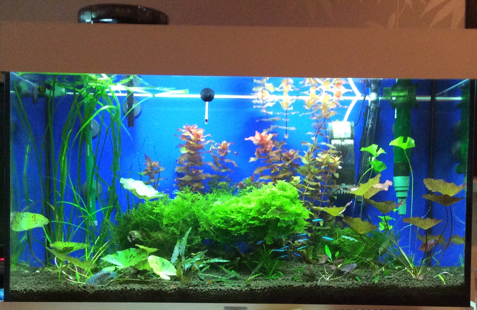 Kaveri ei ottanut ollenkaan ulkosuodatinta, ja kärsi jonkin sortin ongelmia. Lopulta päätyi myös ottamaan toisen suodattimen. Teet niin tai näin, matka on mukava! Olen nauttinut Juwellistani todella paljon. Kasvit on vaihtunut moneen kertaan. Hiilidioksidi-laitteekin laitettiin. Kasvit kasvavat todella hyvin. Tässä kuvaa viimeisimmän trimmauksen jälkeen.