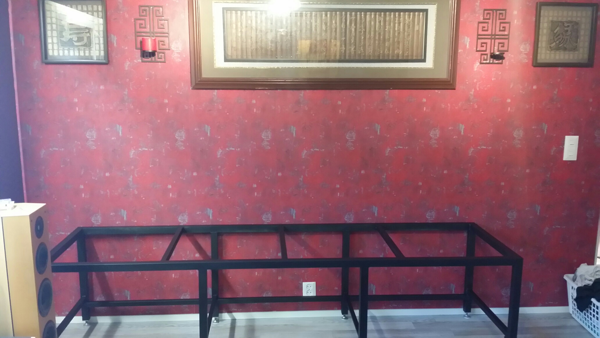 No niin nyt on paikka raivattu olkkariin ja jalustaa tuunattu ja maalattu.