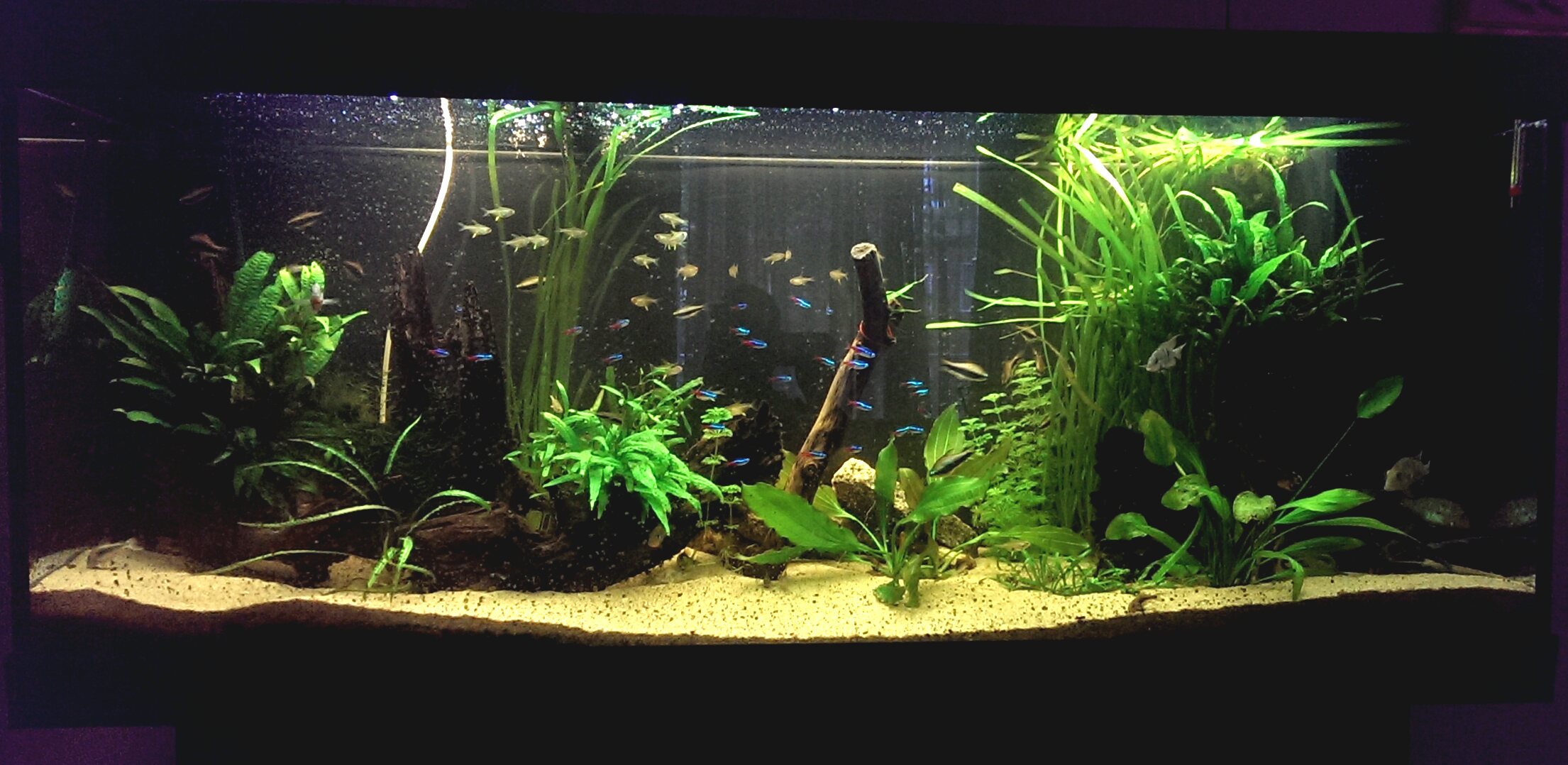Itse olin ajatellut vaihtaa toisen putken siniseen/punaseen väriin, pääsis kasvit ja kalat hiukan enemmän edukseen.
