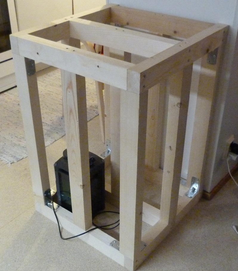 Suunnittelin akvaariojalustaa 450l akvaariolle ja ajattelin jakaa piirrustukset muiden akvaristien kanssa. Materiaalina käytetään perinteistä kakkosnelosta. Jalustan mittoja voi soveltaa isommille ja pienemmille akvaarioille, kahteen metriin mentäessä täytyy olla jo yksi jalkapari lisää