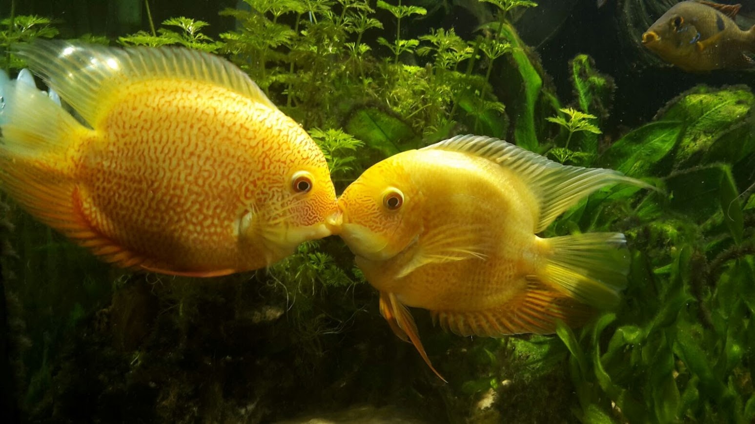 Tässä olisi kaksi perhoskirjoahventa - uusi koiras liehuevineen ja näköjään hieman innostunut naaras, joka varmaan kohta kutee.