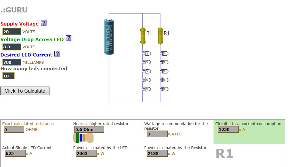 Hienoa! Mennään siis tällä kokoonpanolla. Minulle olisi tulossa kolme kapeaa 1200mm jäähdytysrimaa, niihin nyt jää se ainakin 10 x 3w vielä laajennusvaroja. Mä tuossa juuri selasin netistä näitä ohjeita taas kerran ja eksyin www.ledcalc.com laskuriin niin se selvitti monta asiaa. Nyt ymmärtänen miten ledit tulee kytkeä ja todennäköisesti etuvastus olisi 3.9 ohminen mikäli päätyisin tuollaiseen maltilliseen 19V 150W virtalähteeseen. Forward voltage ledeillä oli sen 3.2-3.4V.