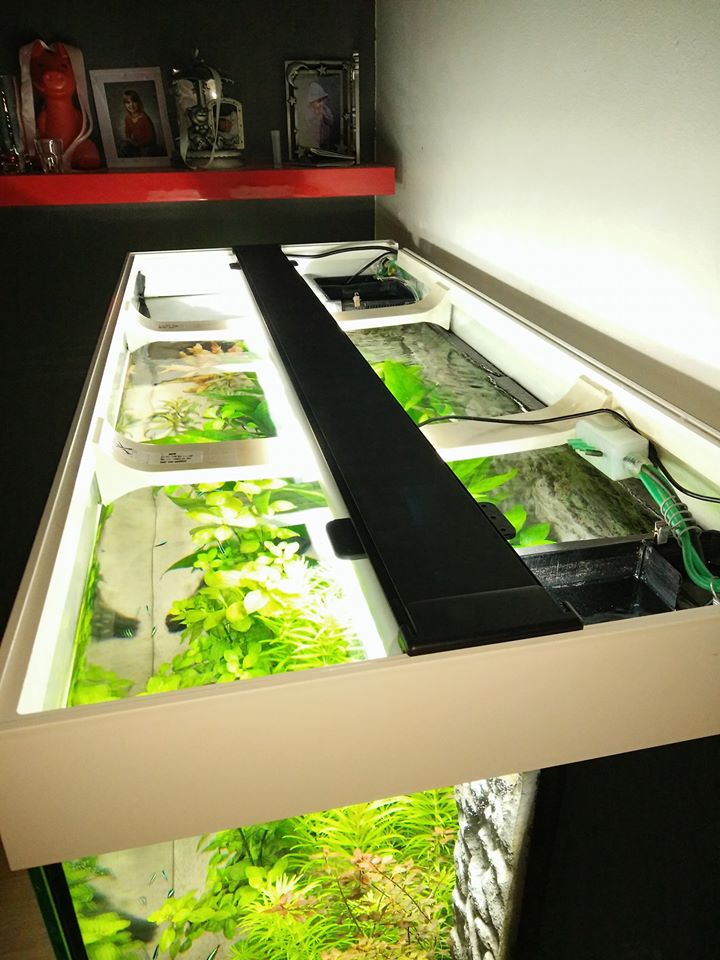 Suurin syy miksi päädyin noihin valoihin oli juurikin tuo 4 kanavaisuus. Ei tarvitse tyytyä muiden "valitsemiin" sävyihin. Toinen tärkeä valintakriteeri oli helppo kiinnitys juwelin akvaan. Niin, että voin edelleen käyttää niitä juwelin läppiä ja, että ulospäin (päällepäin) ei näy, että altaassa on ledit.
