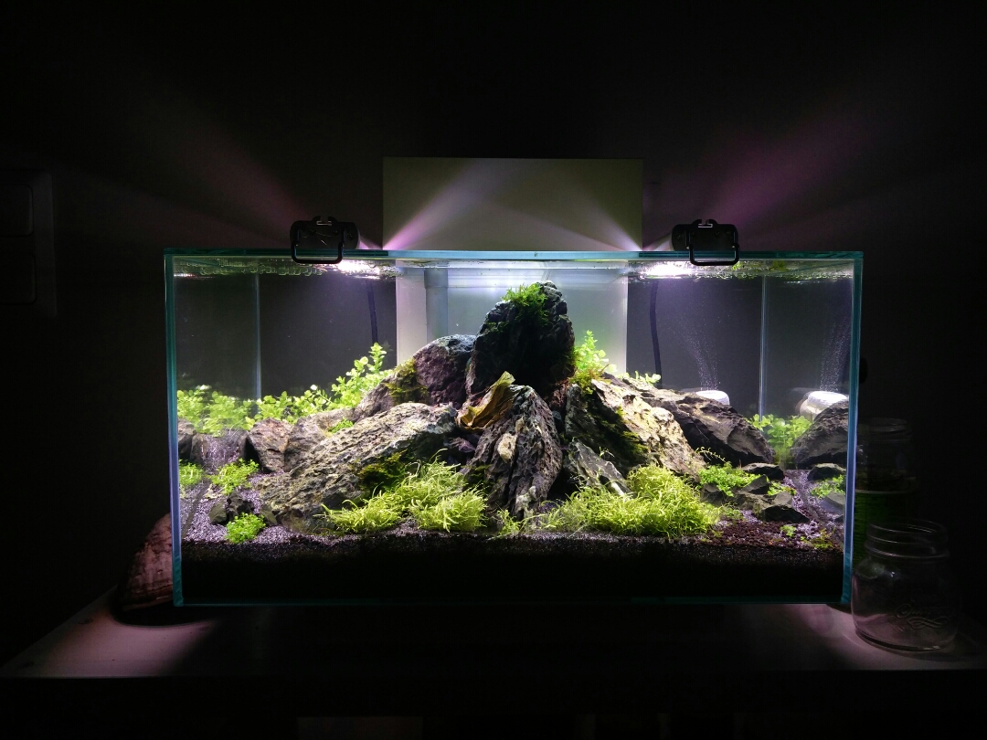 CO2-laite ei ole ollut päällä ollenkaan. Sen laittelen putputtamaan kunhan valoa on ensin tarpeeksi. Hankin siihen juuri magneettiventtiilin niin saa ajastuksella yöksi pois päältä.