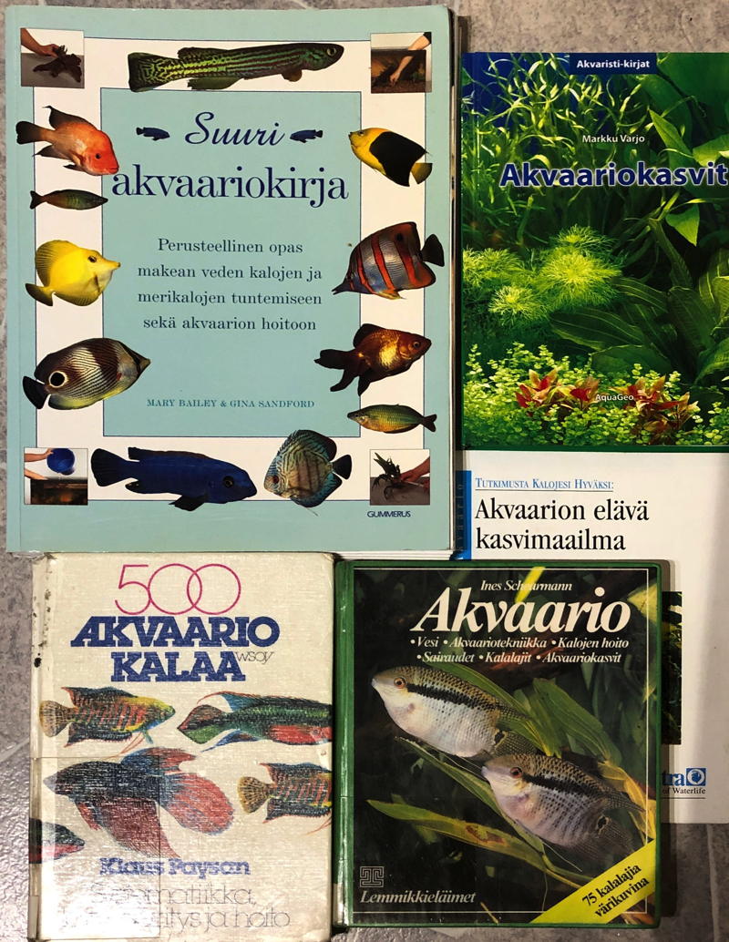 Kolme tulisuuta, leväbarbeja, verkkonuoliaisia, isoseepranuoliaisia, kardinaalitetroja, intiaaninsulkia, corydoras-monnisia.