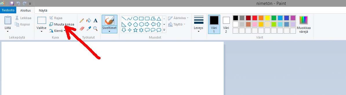 Pouko, tässä on mun Paint. Windows 8.1. Nuoli näyttää sen toiminnon, mitä tarvitset.