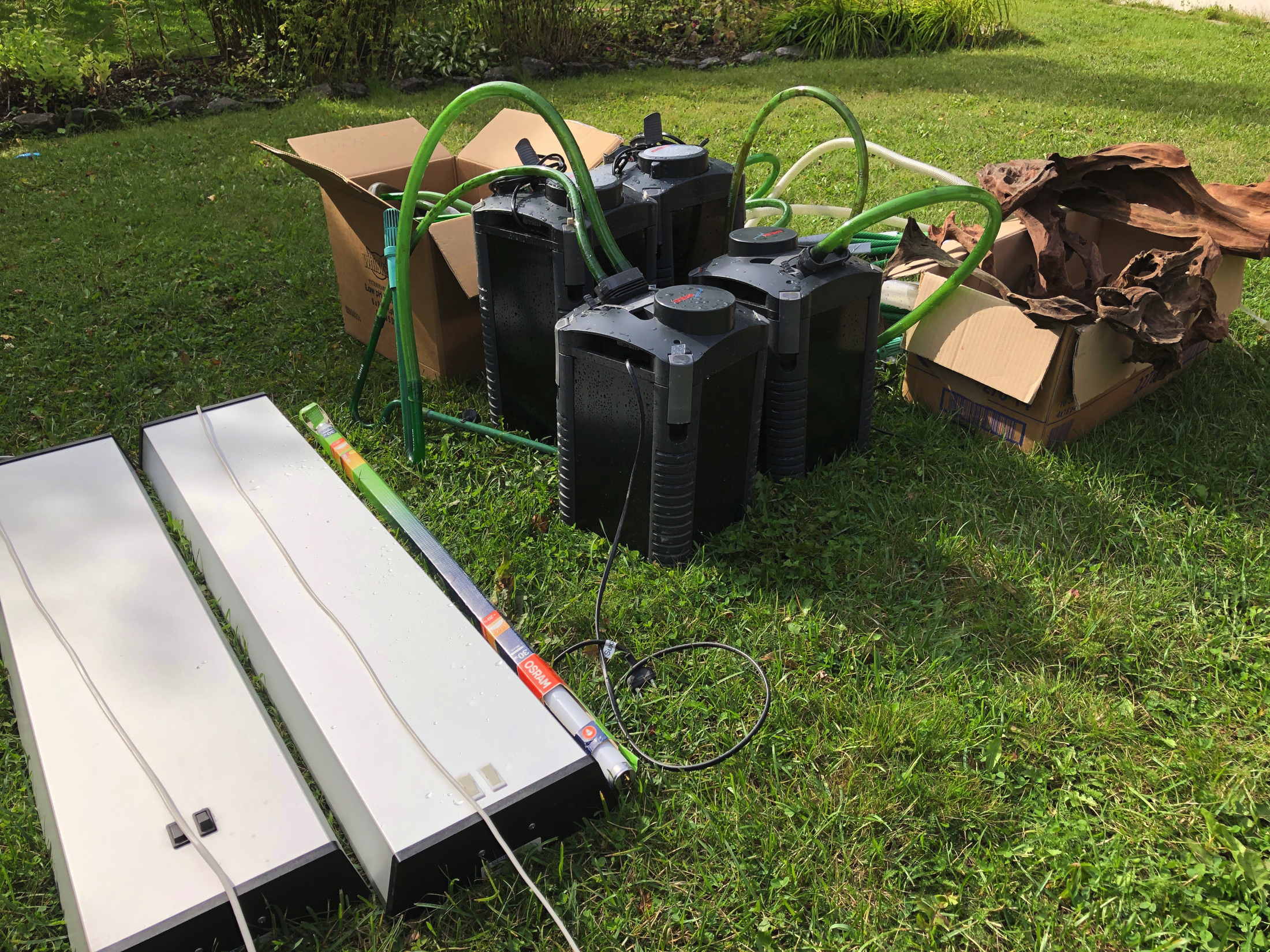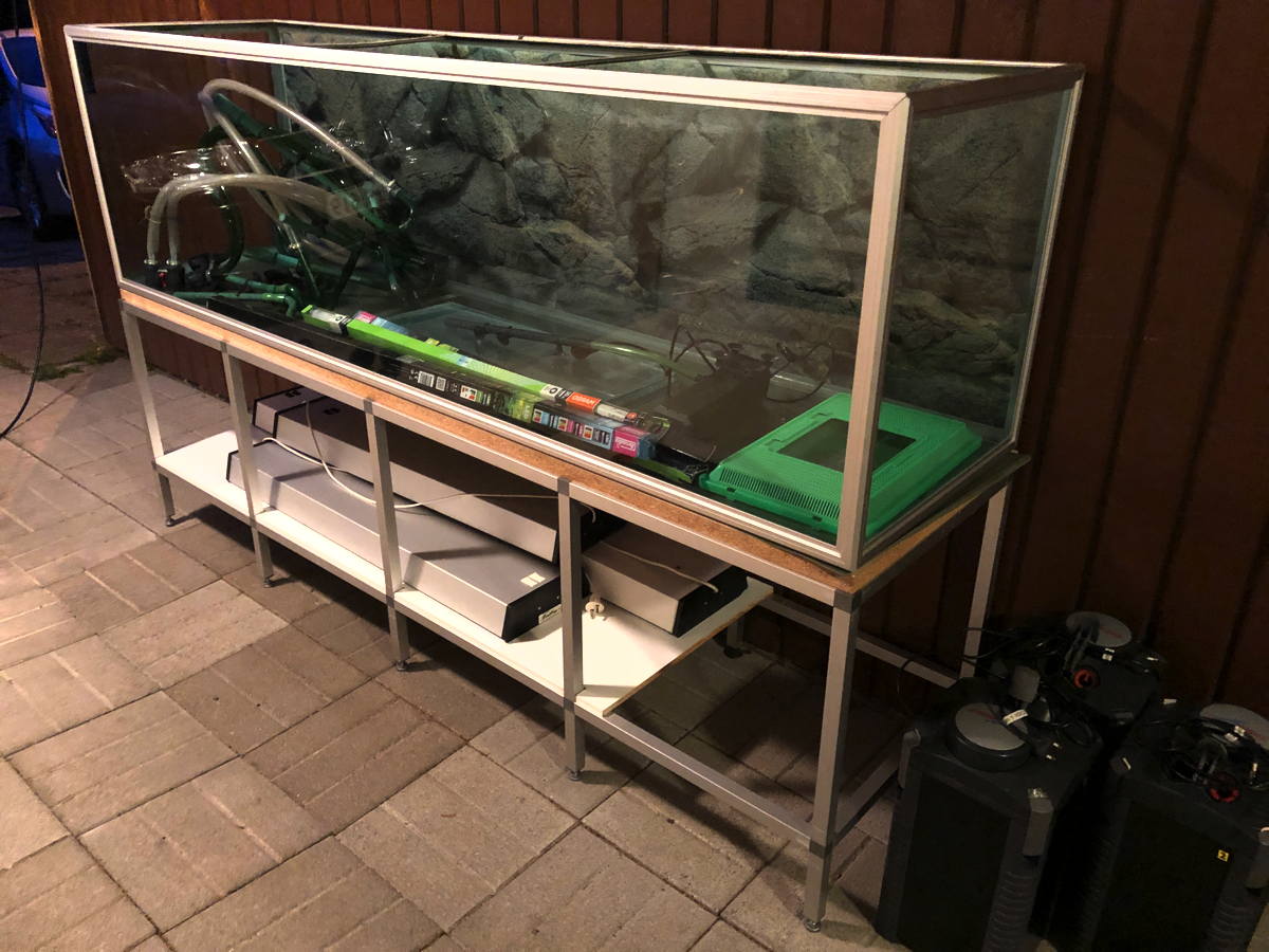 Joudun remontoimaan olohuonetta ja vähän siirtämään seiniäkin, minkä takia ainakin väliaikaisesti akvaarioharrastuksessa täytyy pitää taukoa. Hieman kiirekin olisi. Kaupan päälle voidaan neuvotella riittävästi varusteita: vesitestejä, ruokia, haaveja, kiviä, kantoja, suodattimien varaosia, leväraappoja, kasvilannoitteita ja paljon muuta.