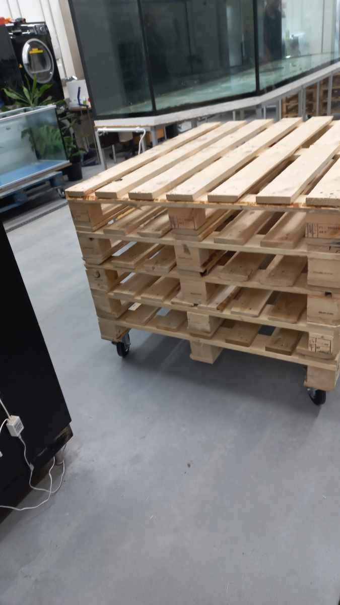 Lavat laitettiin trailerin renkaiden kohdalle niin, että akvaario jäi ilmaan päistään. Tämä siksi, että jos matkalla tulee töyssyjä ja trailerin joustaa päistään niin akvaario ei napsahda keskeltä poikki.