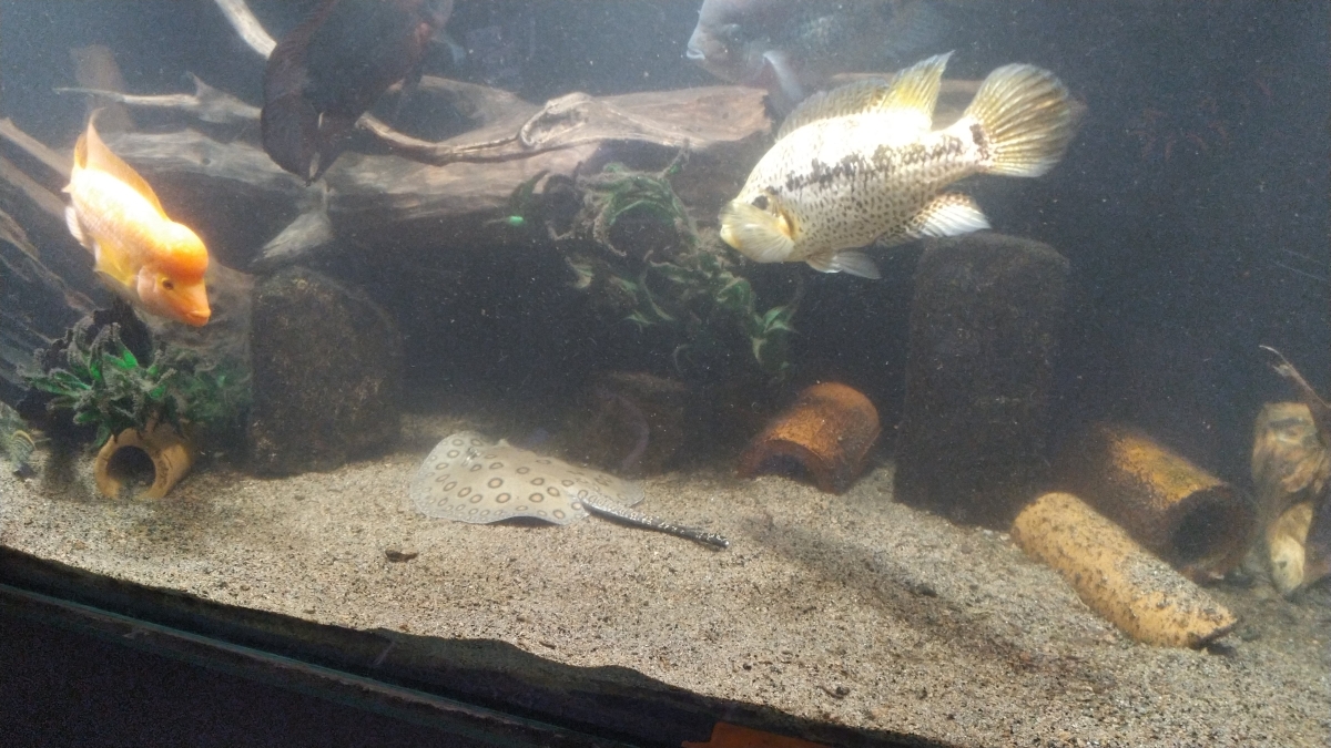 Päätinkin siirtää tytön isojen ahvenien ja plekojen kanssa samaan akvaarioon ja siivotessani sotkin veden aika lahjakkaasti. Olisi ollut liika suuri riski laittaa nuo samaan akvaarioon tai tuota naarasta sinne mihin meinasin. Tuo naaras olisi ehkä syönyt kaikki kalat.