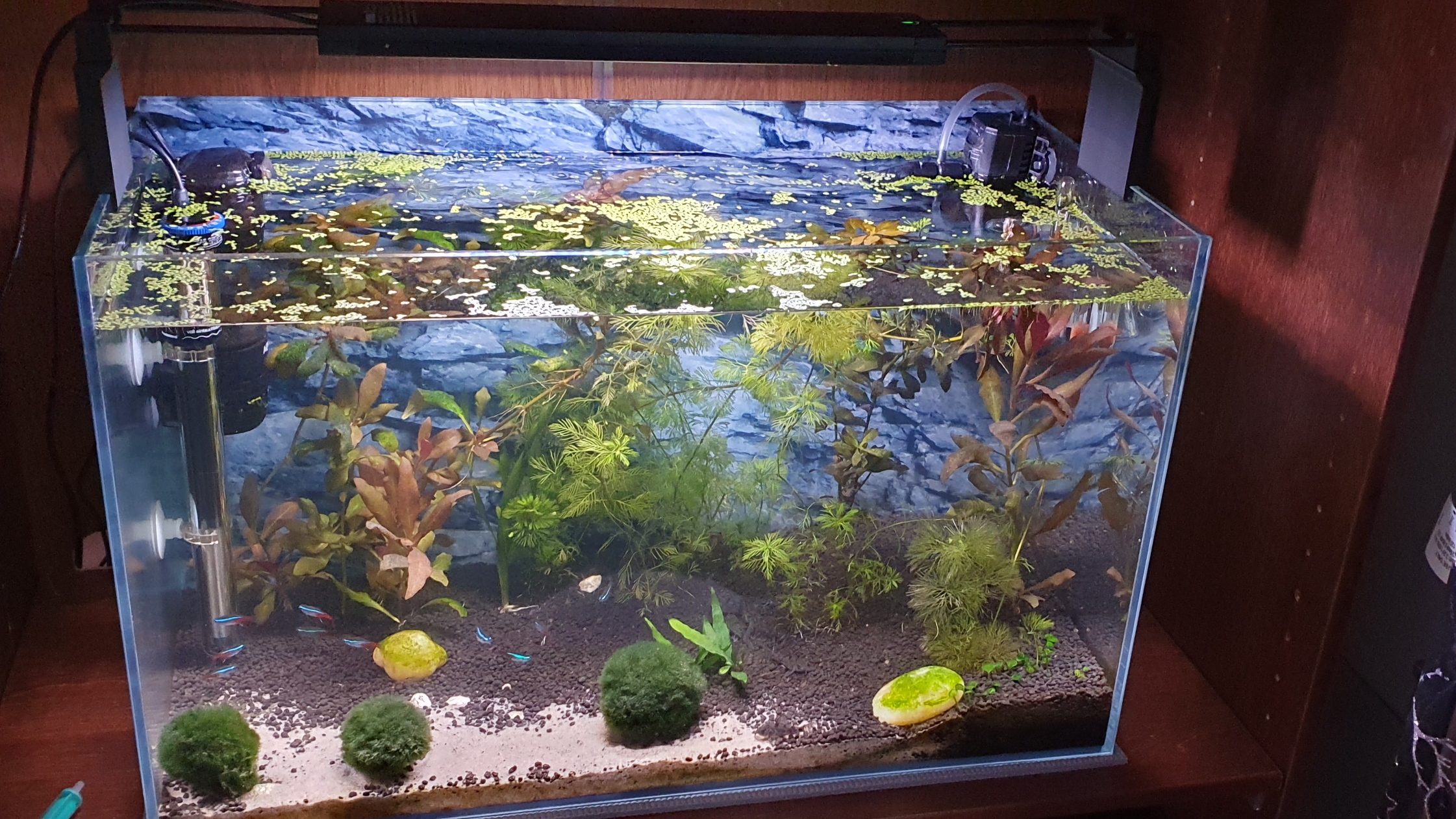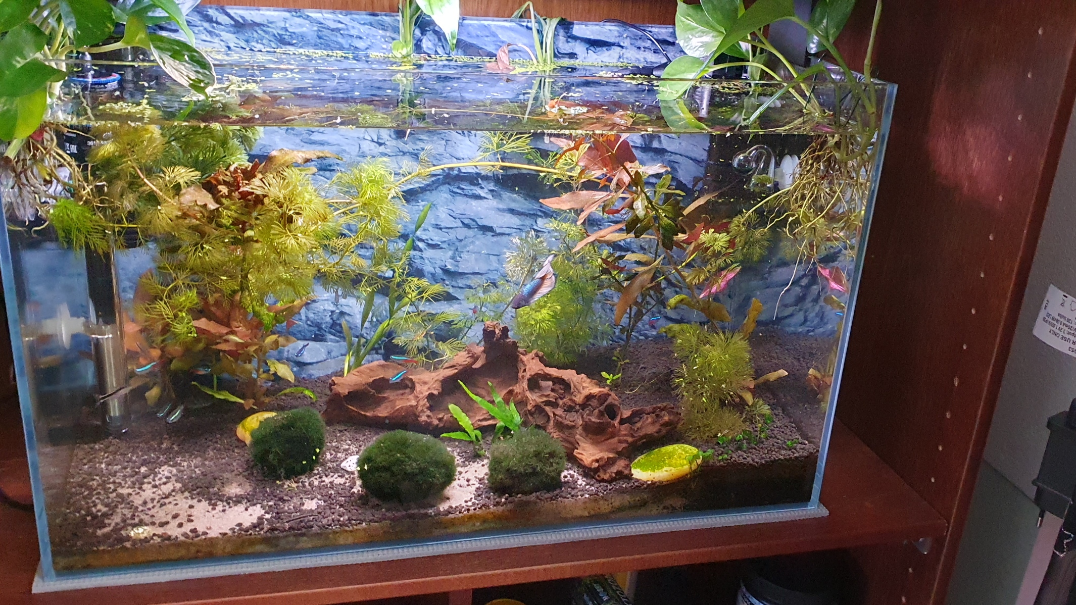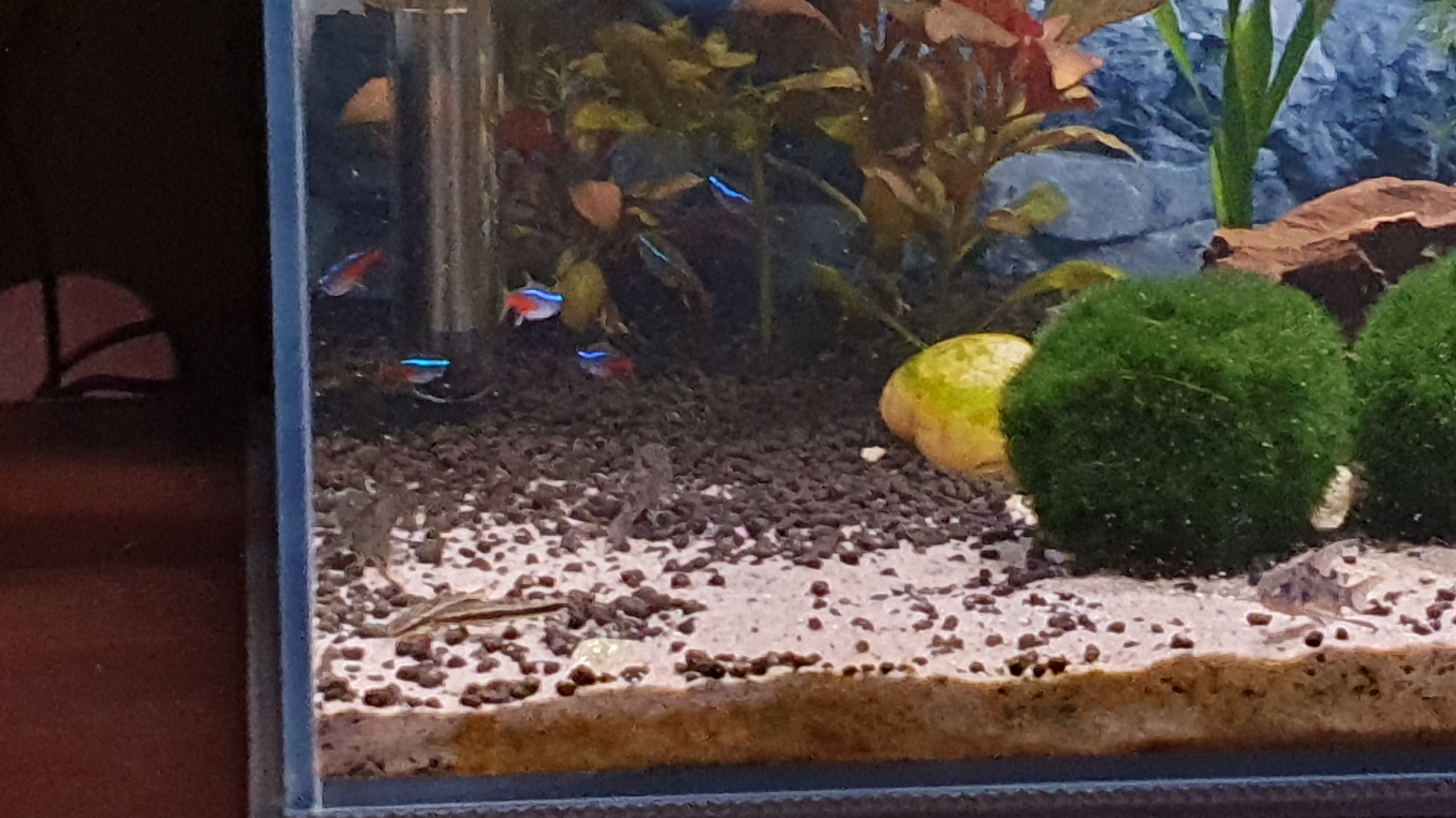 Kuvassa myös ludwigiat, miten ne on karisseet. Taidan korvata sen papukaijalehdellä, mikä pitäisi olla helppohoitoisempi. En ole tosin jaksanut laittaa pohjatabletteja aikoihin akvaarioon. Ludwigiat tykkäsi alussa juuritableteista, sekä co2 -systeemistäni. En ole alun jälkeen innostunut yhtään co2 lannoittamisesta, koska se on niin työlästä ja kasvaahan suurin osa kasveista ilmankin.