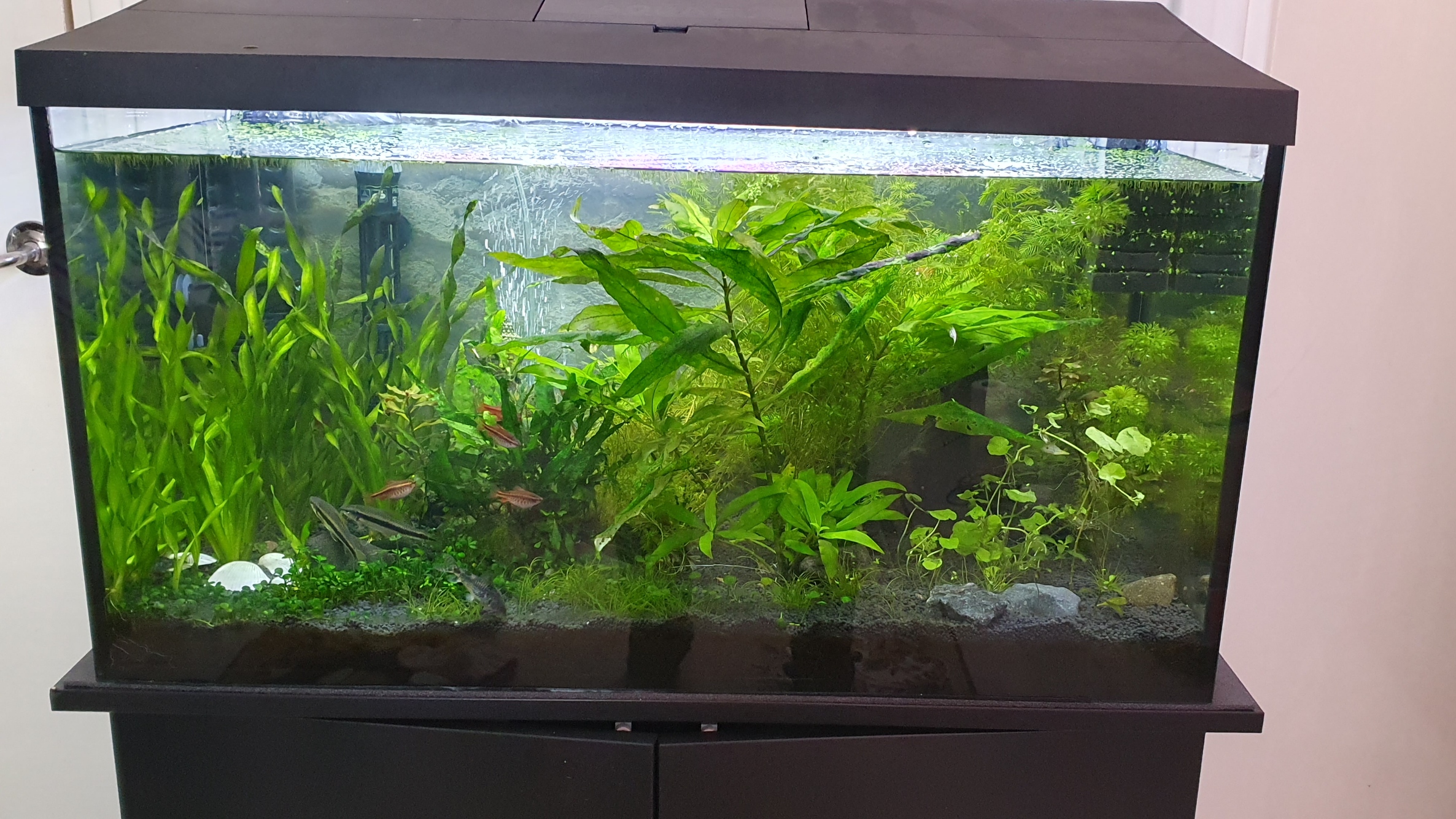 Kuvassa myös ludwigiat, miten ne on karisseet. Taidan korvata sen papukaijalehdellä, mikä pitäisi olla helppohoitoisempi. En ole tosin jaksanut laittaa pohjatabletteja aikoihin akvaarioon. Ludwigiat tykkäsi alussa juuritableteista, sekä co2 -systeemistäni. En ole alun jälkeen innostunut yhtään co2 lannoittamisesta, koska se on niin työlästä ja kasvaahan suurin osa kasveista ilmankin.