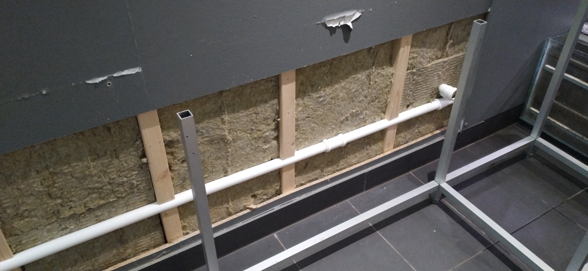 Mulla kulkee seinän sisällä akvaarioita varten viemäröinti mihin piti tehdä omat liitännät uudelle altaalle.