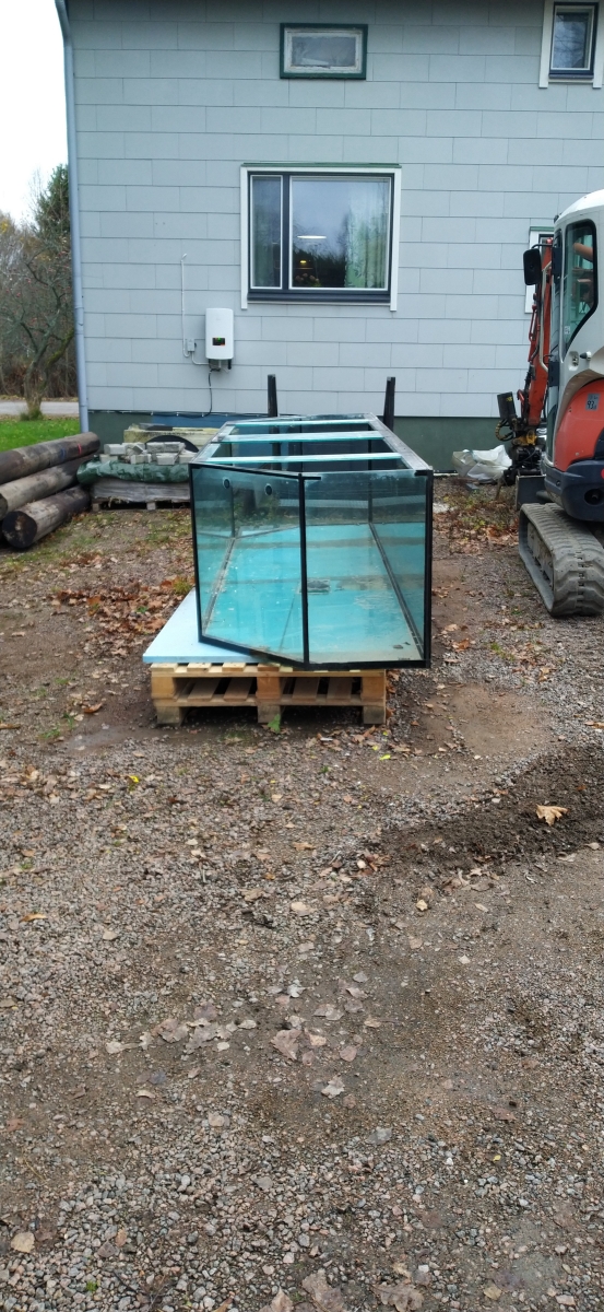 Sitten kun sain nämä kaikki tehtyä tuli vaimo sanomaan, että akvaariota pitää siirtää reilu metri mikä tarkoitti, että sain käydä vatupassin kanssa jälleen kaikki jalat uusiksi läpi. Lisäksi viemäröinneistä toinen jäi keskelle allasta ja siihen tuskin tulee koskaan mitään liitettyä kun on niin hankalassa paikassa eikä sinne uskalla ryömiä kun allas on täytetty.