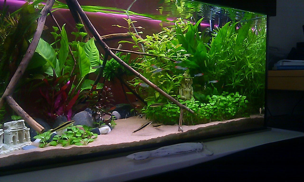 Eihän tuota luonnolliseksi ympäristöksi voi kutsua hyvällä tahdollakaan, mutta who cares? Vaihtelu virkistää,eikä kalatkaan ollut yön aikana pakannut laukkujaan ja muuttanut pois
