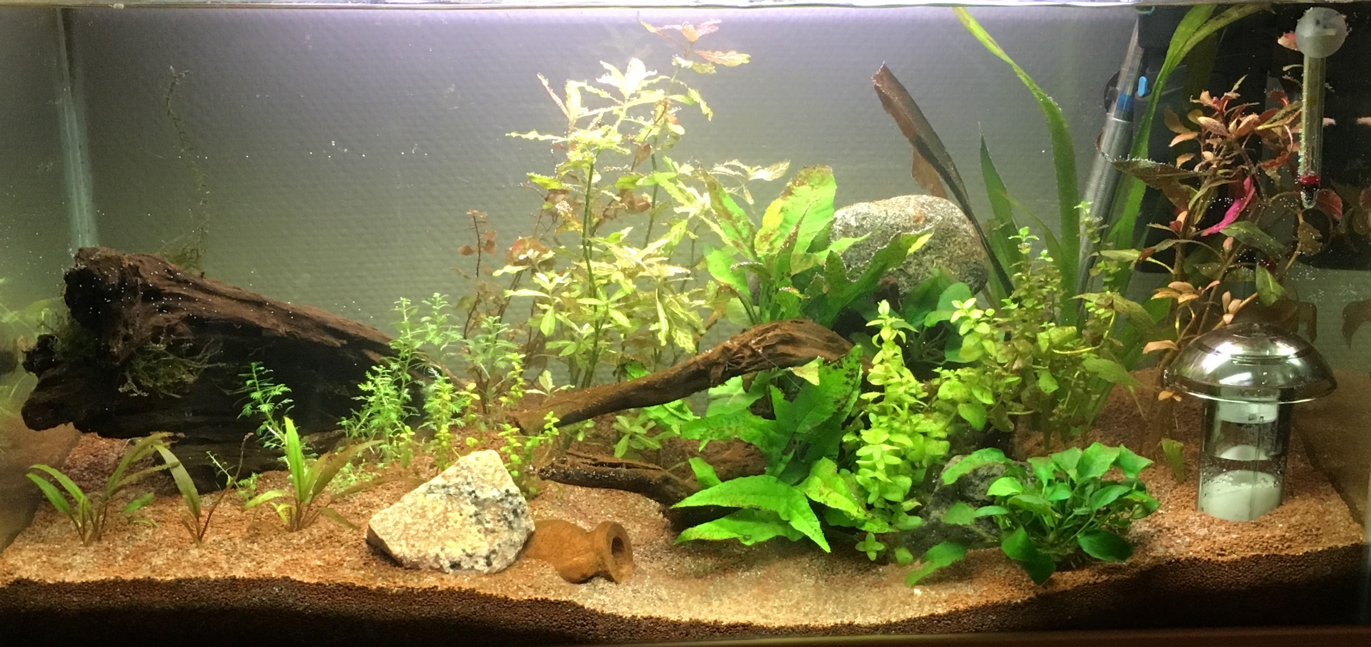 Positiivista on myös piilevän vähentyminen viime päivinä. Lieko ravut niin tehokkaita puhdistajia tai kasvit ovat alkaneet haukkomaan ravinteet vedestä. Lisäsin myös valaistukseen parin tunnin tauon päivällä, josko sekin on osaltaan vähentänyt levää.