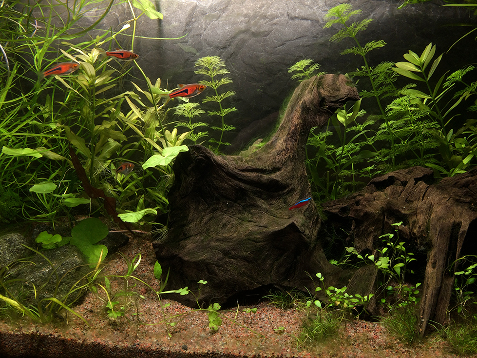 Ajatuksena oli alkuun myös jonkunlainen paludaario, tai enemmän terraario-henkinen pönttö. Mutta tuo 110 litraa on sen verran vähän että sen vajaaksi täyttäminen saa näyttämään sen aika ankealta, tai sitten mulla on vain mielikuvituksessa rajotteita.