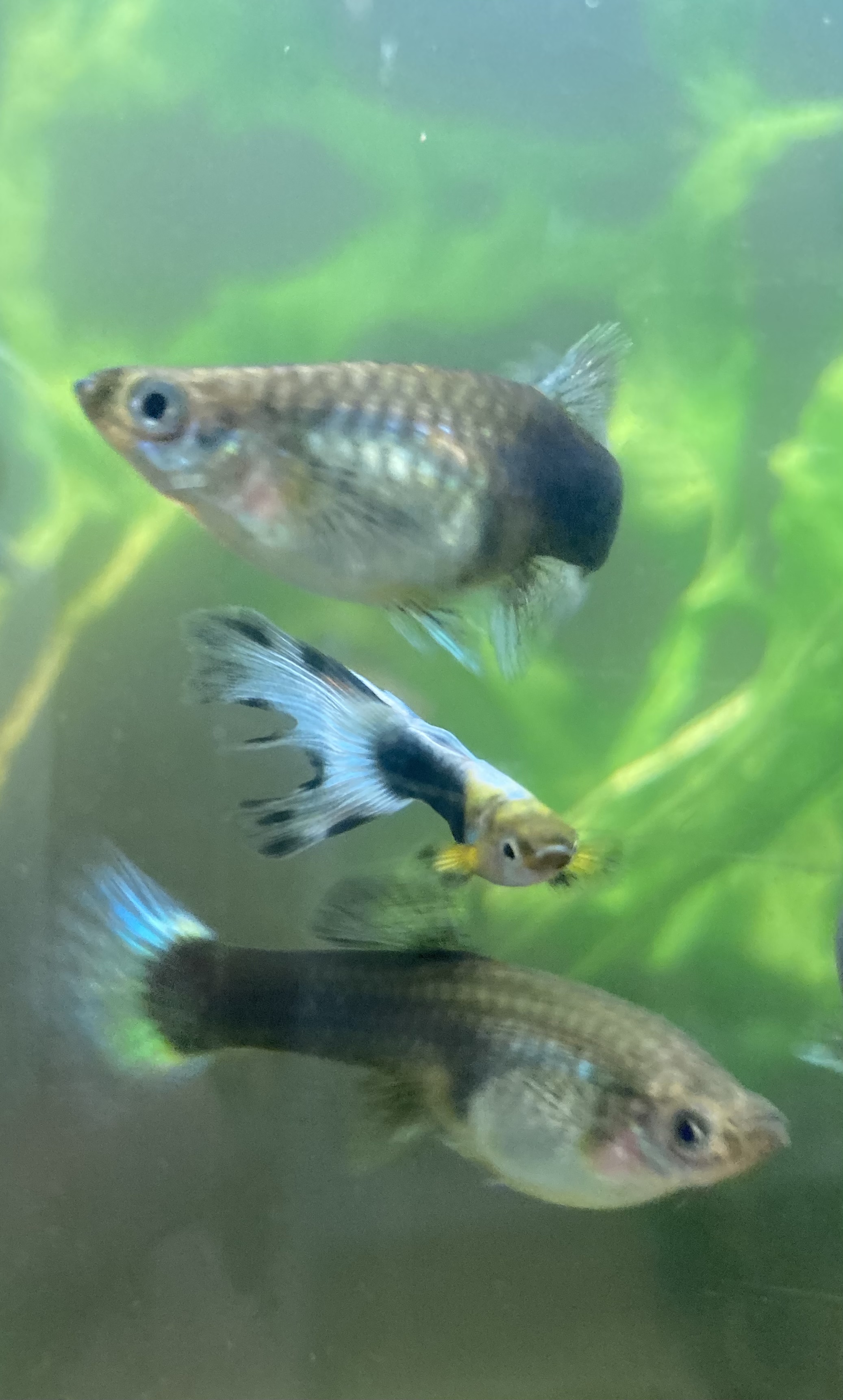 Nyt on aika pitkälti varattu nuo millä on kroppa tummansininen ja huntupyrstö vaalean kirjava. Mutta toivotaan huikeaa poikastuotantoa, niin lisään altaita ja kaikki halukkaat saisivat nuita söpöliinoja.