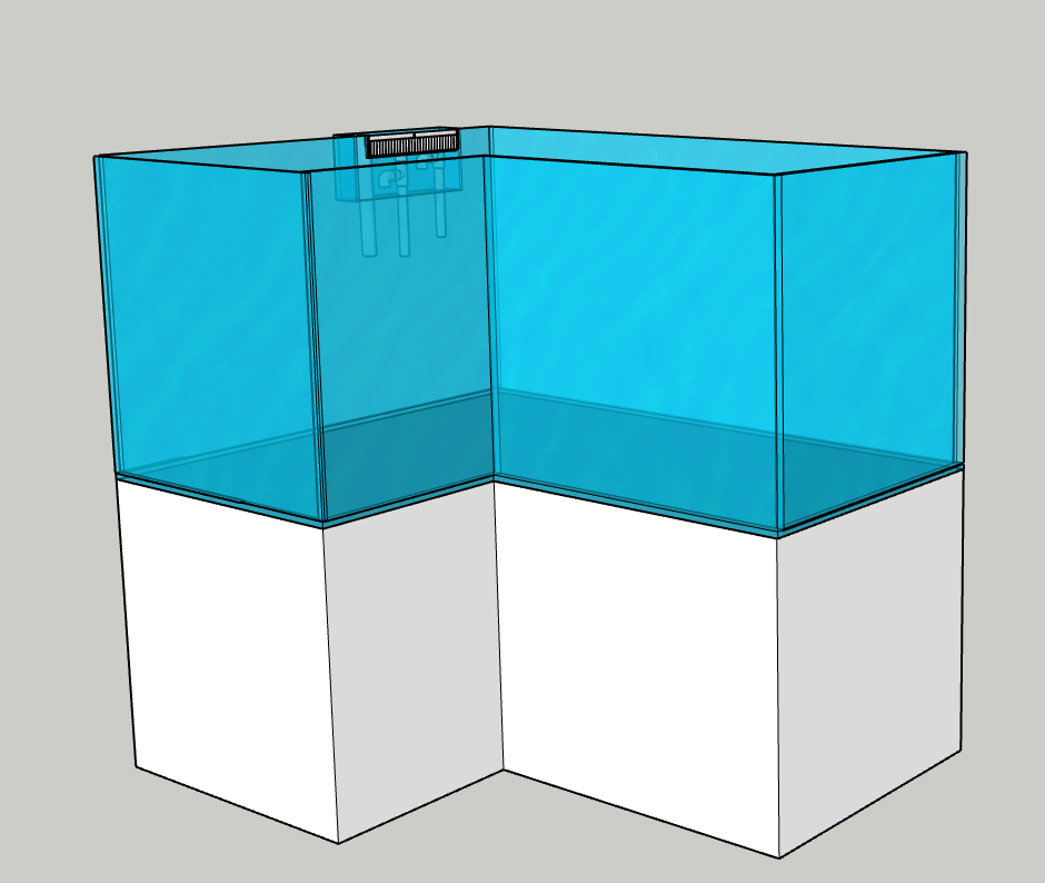 Suunnitelmissa olisi ala-allas, joka sijoittuisi akvaarion alapuolelle. Olen lukenut netistä erilaisista ylivuotolaatikoista ja vaihtoehtoja tuntuu olevan todella paljon! Coast to coast, ghost jne. Ylivuoto minun suunnitelmissani olisi kiinteä ja akvaarion ulkopuolinen, seinän puoleiselle sivulle tuota ajattelin mutta jos toiselle puolelle sijoittaisin sen niin se pitäisi sitten laittaa sisäpuolelle.Akvaarion ja seinän välissä tuolla puolen olisi noin 23 cm tilaa ulkoseinän vuoksi ja huoltoja ajatellen, mutta onko tuo etäisyys liian pieni järkevään toimimiseen? Akvaarion alapuolelle tehtävät poraukset hiukan hirvittävät, minusta olisi turvallisempaa laittaa poraukset yläosaan sivulle tai aivan yläkulmaan kuten kuvissa. Toivoisin ala-altaista ja ylivuodoista enemmän tietäviltä (ja muiltakin) kommentteja suunnitelmieni järkevyydestä.