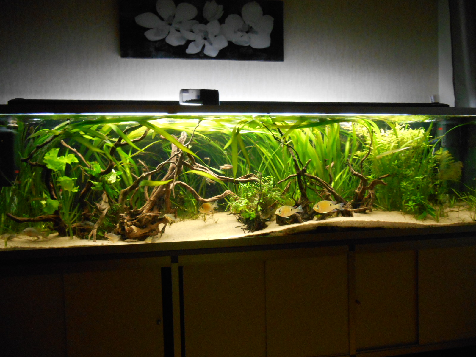 Ja sitten niitä speksejä: 500l, pituus 150cm, pehmeä vesi, pH 7.5, nitriitti 0, nitraatti 12,5mg/l tai alle (tetran tippatesti), 25C, sorapohja (mietinnässä vaihtaa hiekkaan, mutta en ole siitä vielä varma)
